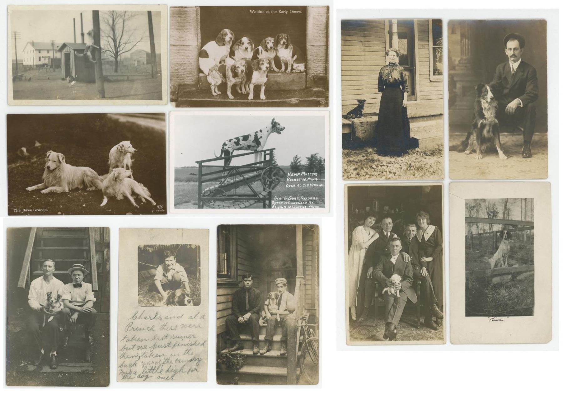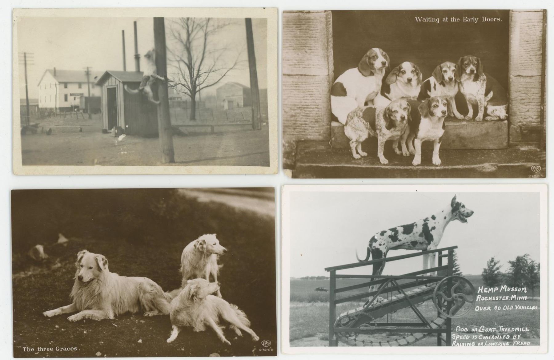Nice grouping. Many different breeds shown, including a great dane on a Goat Treadmill.
