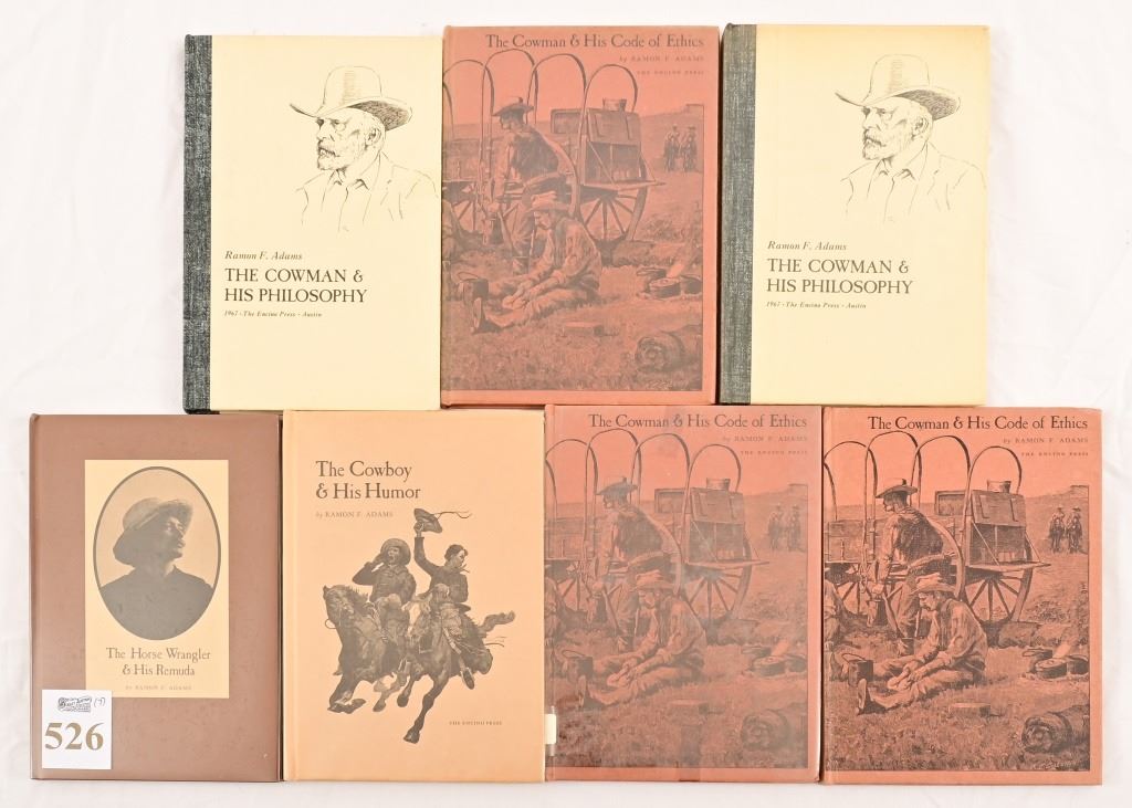 "The Horse Wrangler & His Remuda" The Encino Press, Austin 1971, signed by author. " The Cowman & His Philosophy" The Encino Press, Austin 1967. #250 of 750, signed by author. "The Cowman & His Code of Ethics"The Encino Press, Austin 1969, signed by author. " The Cowman & His Philosophy " The Encino Press, Austin 1967 #1 of 750. Signed by author. "The Cowman & His Code of Ethics" The Encino Press, Austin 1969. #532 of 850, signed by author. " The Cowman & His Code of Ethics" The Encino Press, Austin 1969, signed by author. "The Cowboy & His Humor" The Encino Press, Austin 1968. #494 of 850, signed by author.