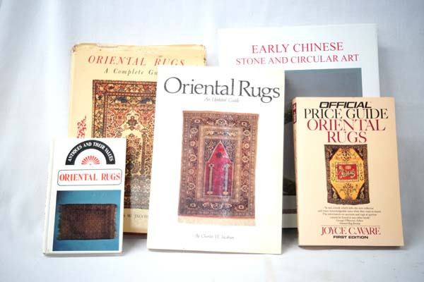 Collection of Reference Books on Oriental Rugs, Antiques and Their Values Oriental Rugs c. 1980 Lyle Publications, Official Price Guide Oriental Rugs by Joyce C. Ware 1st Edition c. 1992 House of Collectibles Publishers, Oriental Rugs An Updated Guide by Charles W. Jacobsen c. 1977 by Charles W. Jacobsen Inc., Oriental Rugs A Complete Guide by Charles W. Jacobsen c. 1969 Charles E. Tuttle Co. Publishers and comes in original book jacket, Early Chinese Stone and Circular Art by Chad Herrington c. 2003 Chad Herrington Publishers