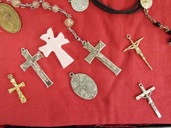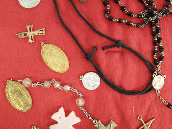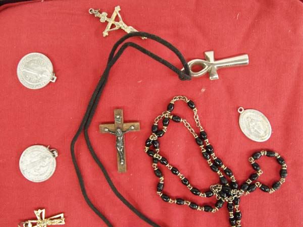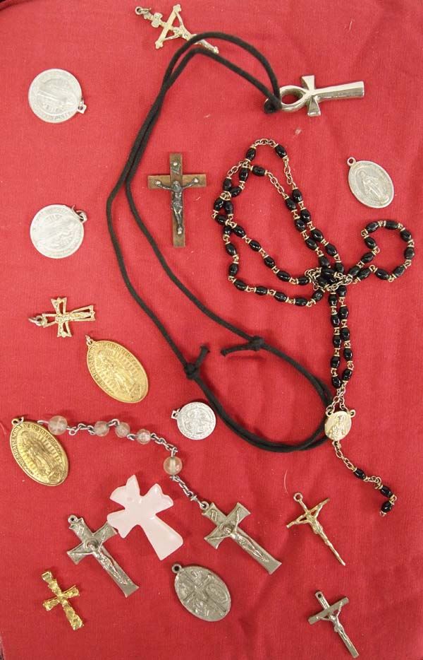 Collection of Religious & Devotional Jewelry, longest measures 25'' end to end, includes crosses, medallions, rosary beads, and an ankh cross necklace