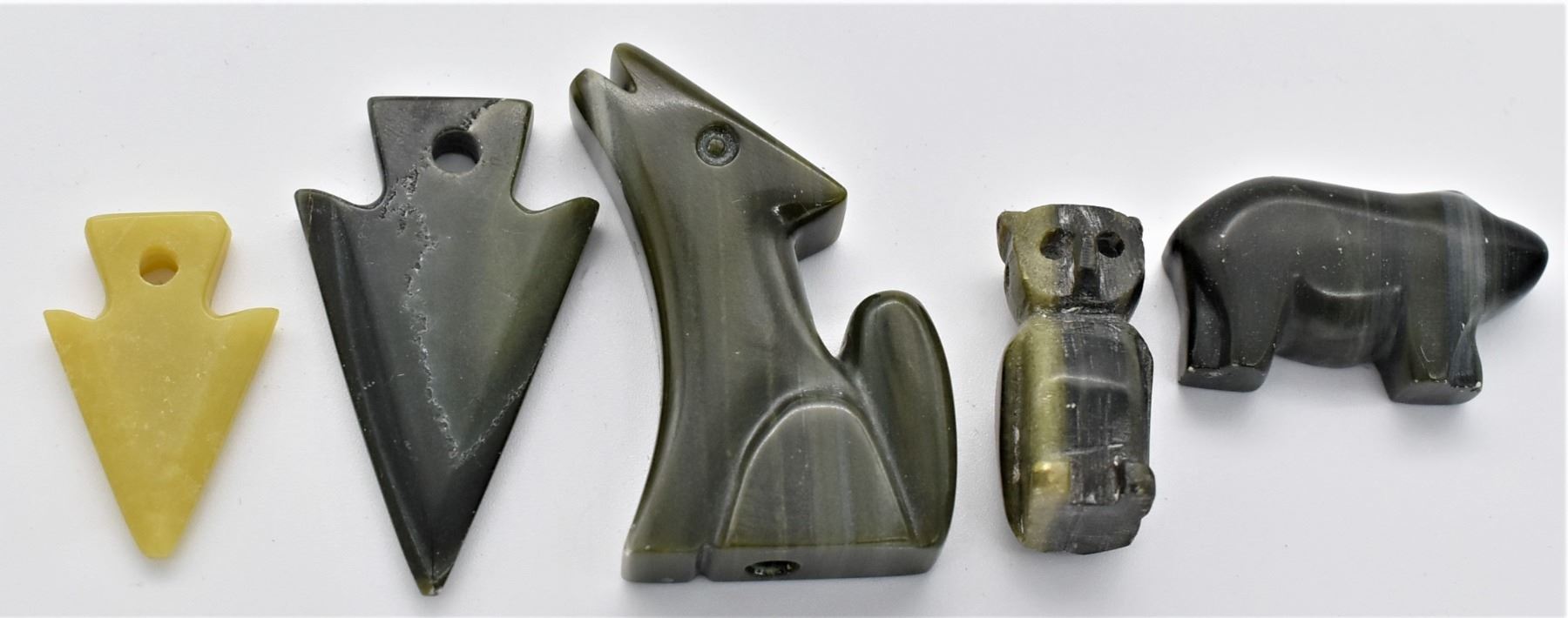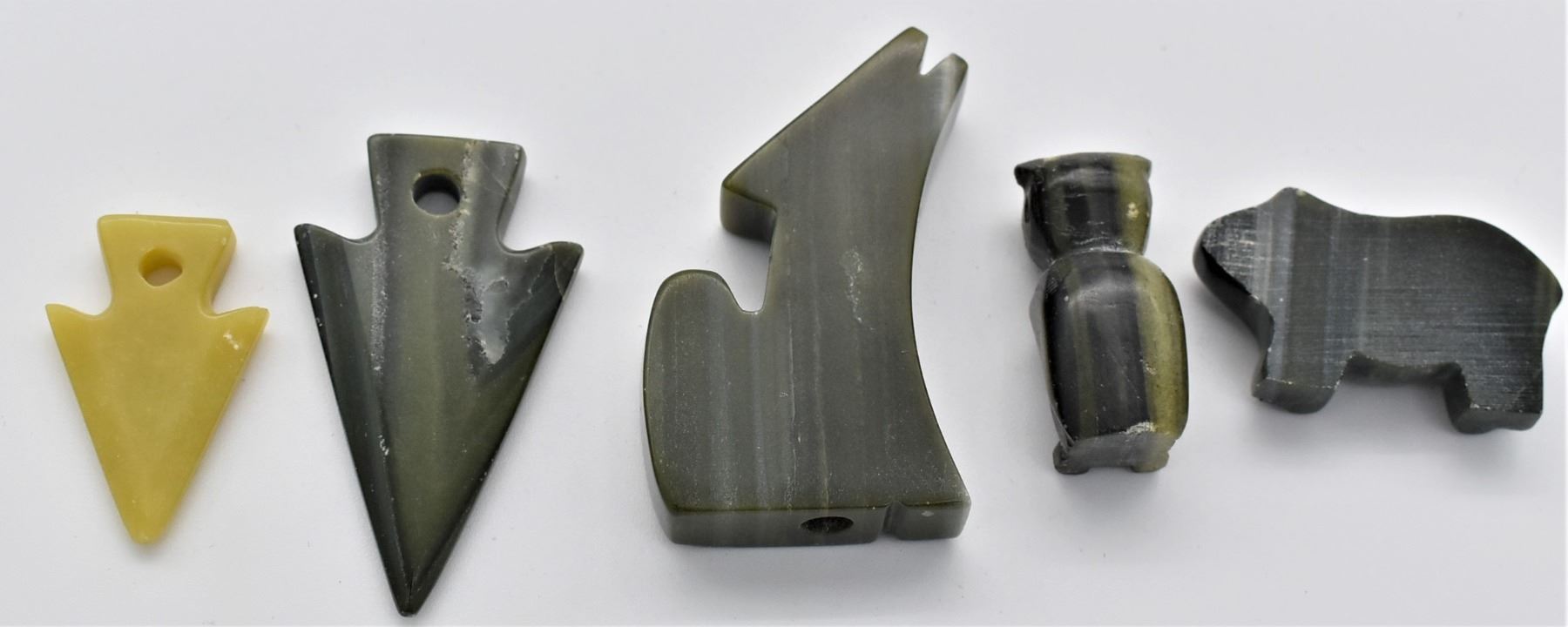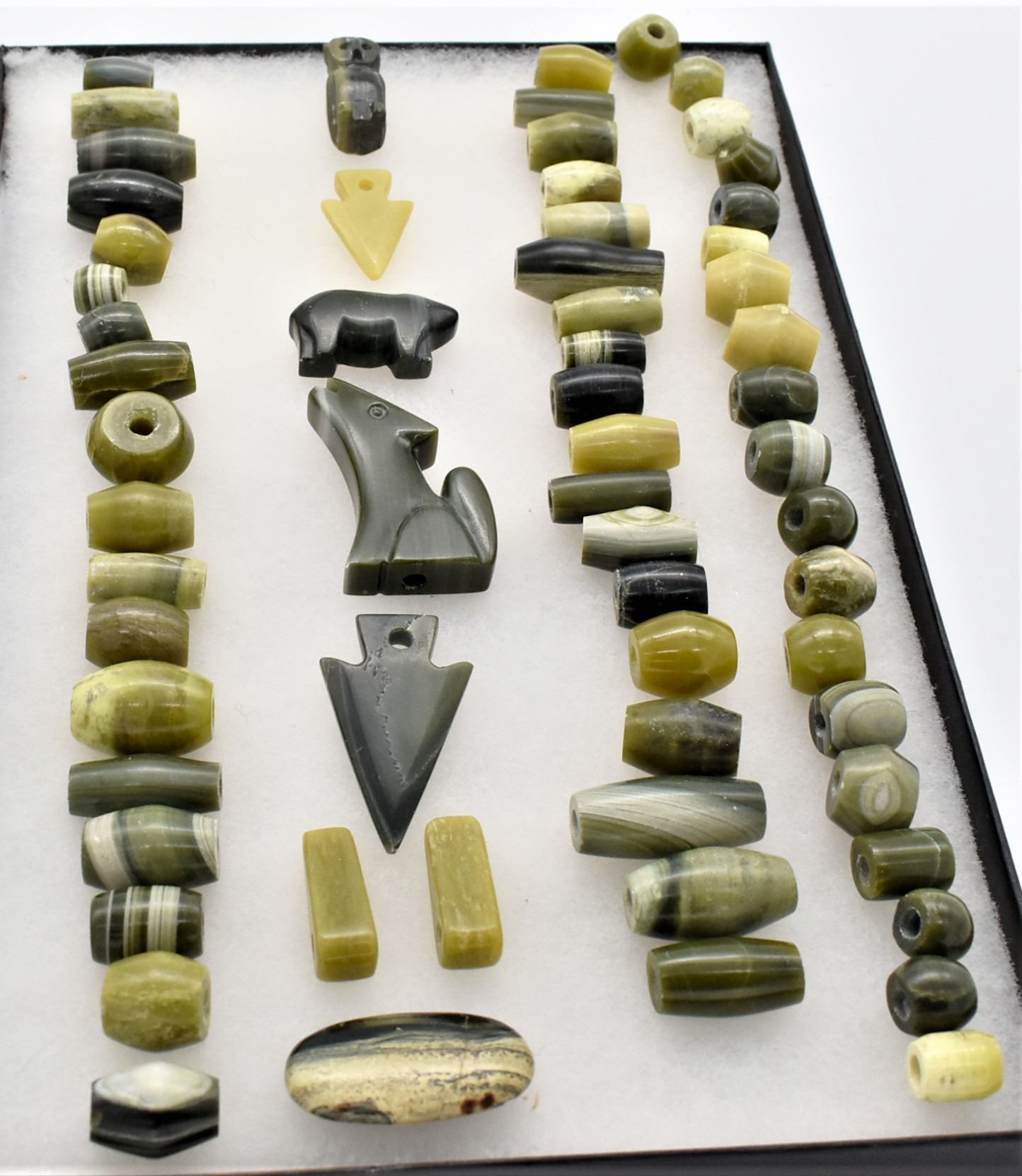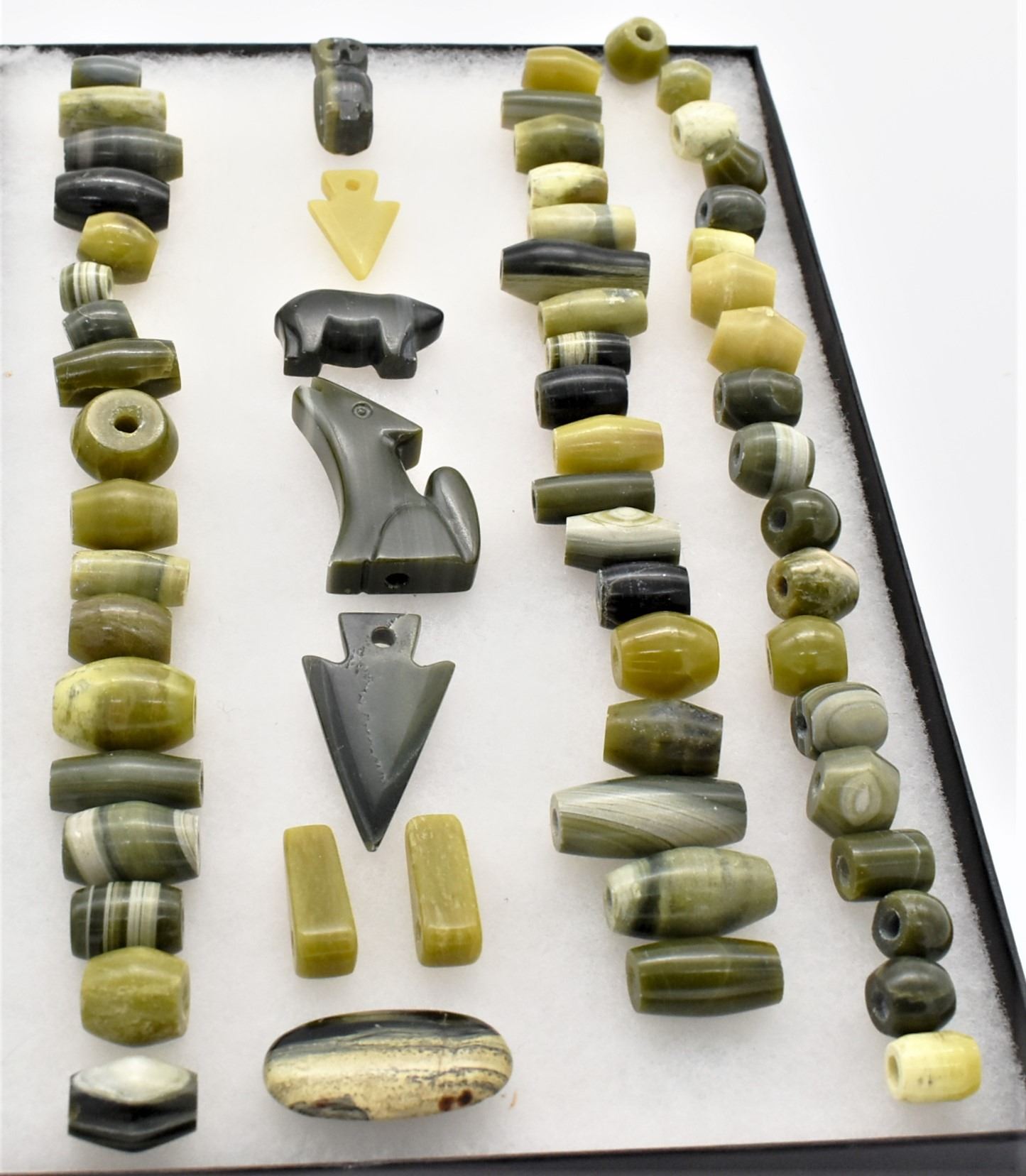 Collection of Ricolite Beads and Pendants, largest piece measures 2''L x 1.25''W