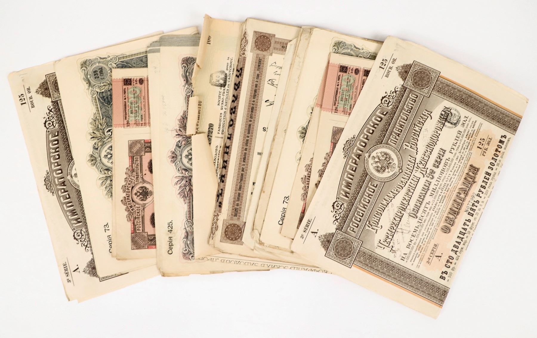 25+. I/U. I/C. Issued 1906. Five different varieties. These are rent certificated, loans for railroad and railroad workers. Fair or better cond.
