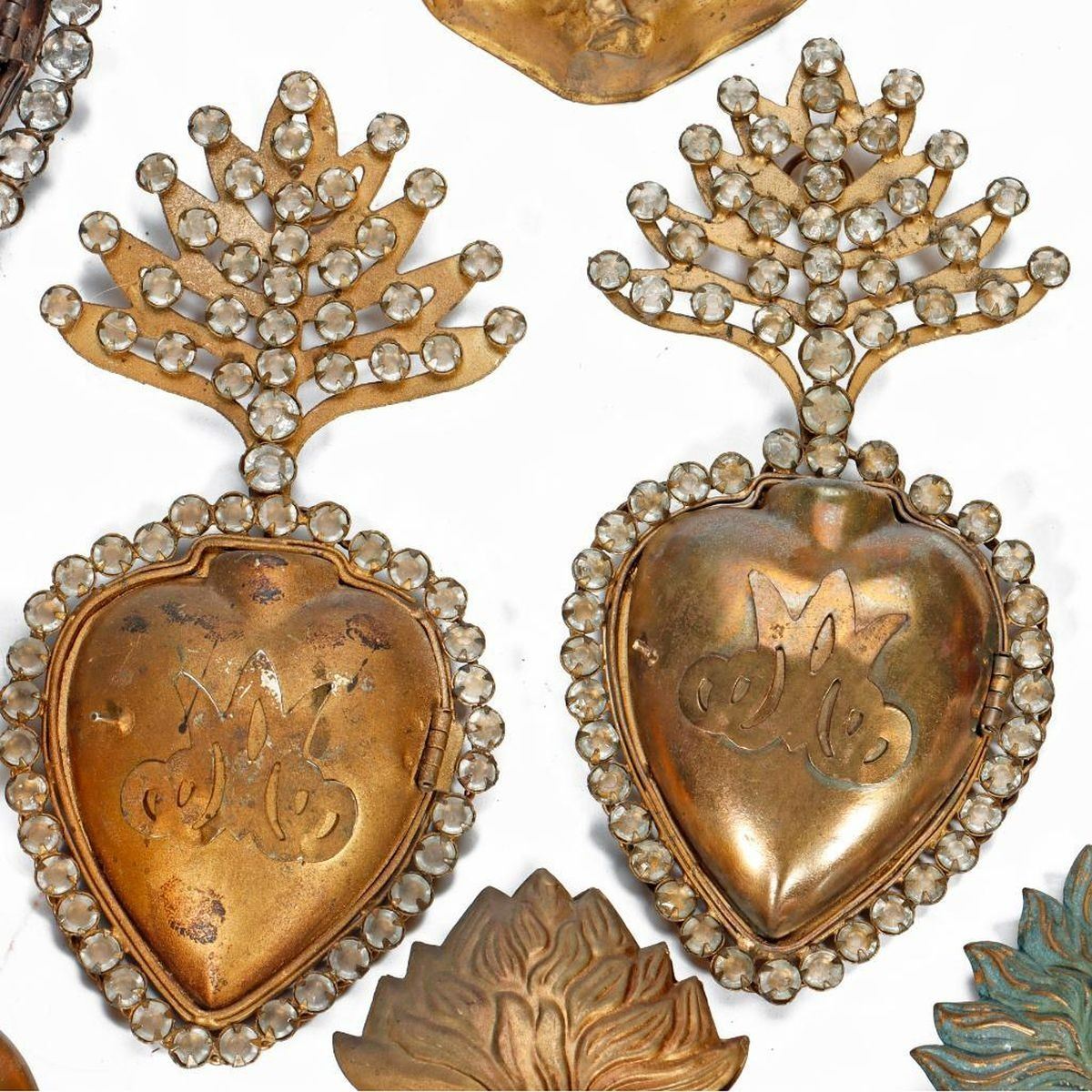 Consisting of five with chased designs and four "jeweled," together with three gilt-metal floral decorative plaques. Ranging from 3 1/4in. to 9in. long.