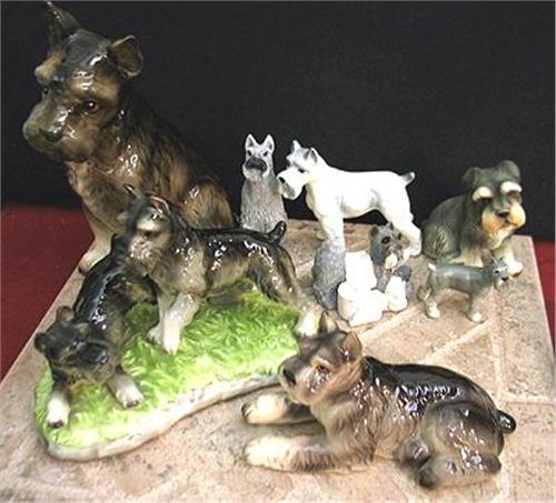 Collection of Schnauzer doggies looking for a home. Tallest one stands 7 1/4" tall. No chips or cracks