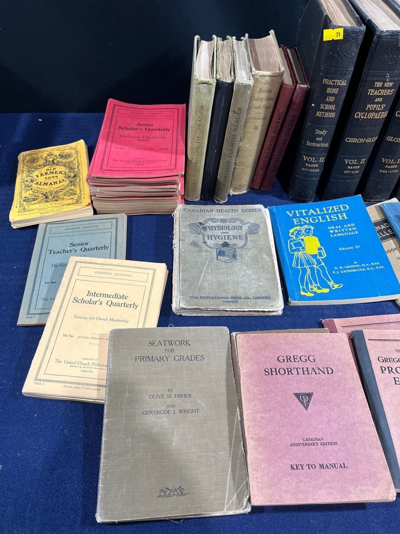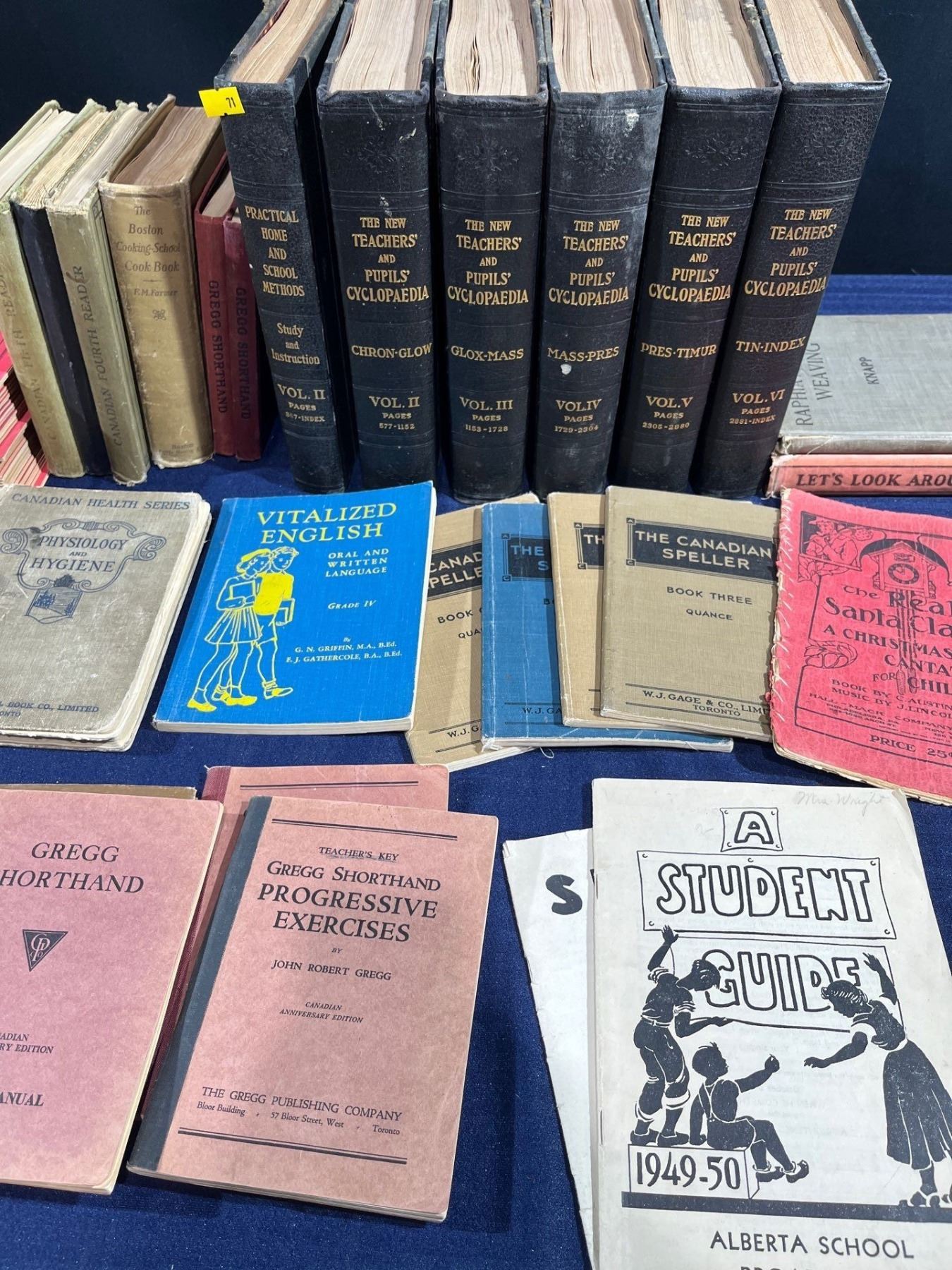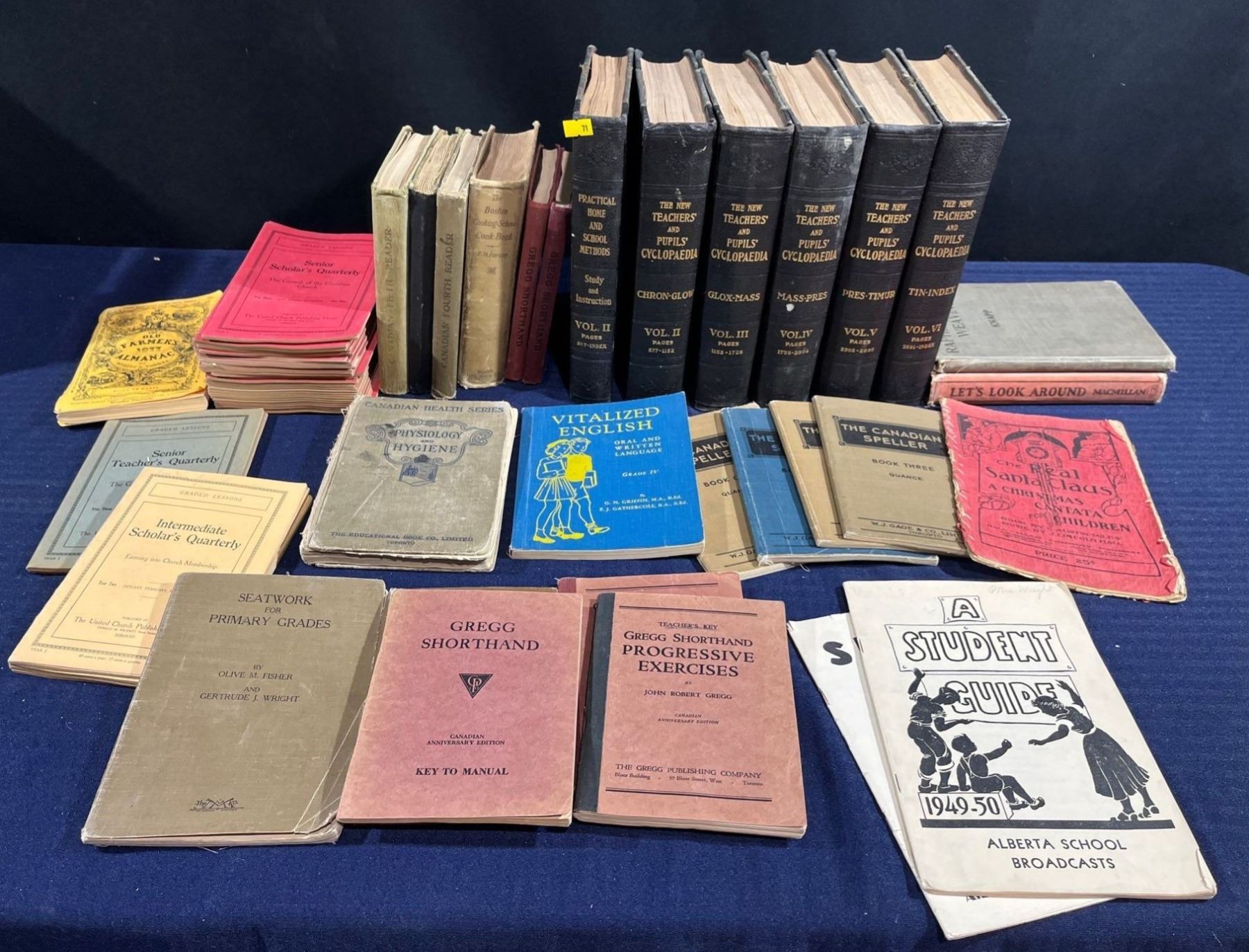 Includes an incomplete sets of The New Teachers' and Pupil's Cyclopedia, Shorthand Guides, The Canadian Speller and more
