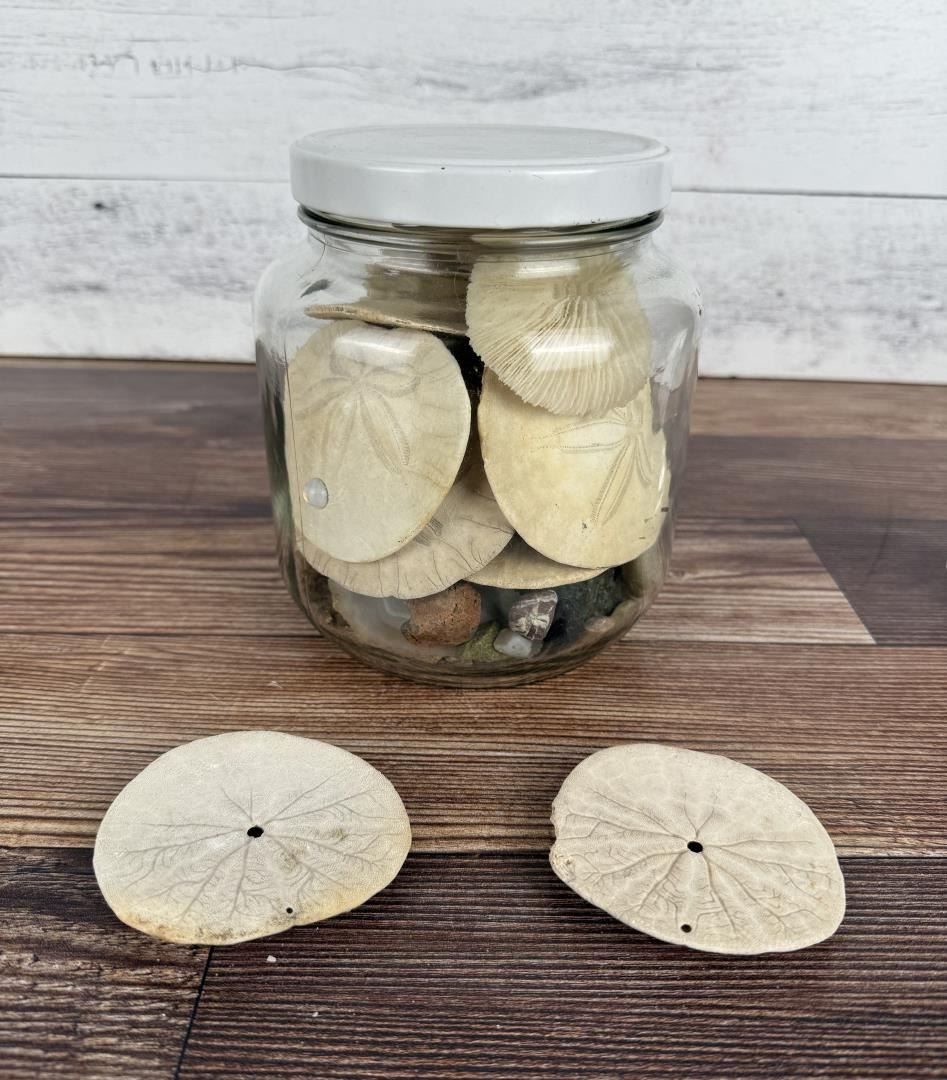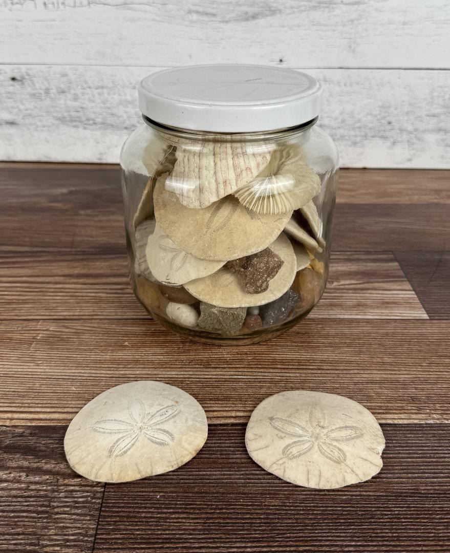 Sand dollars, shells and rock sample. 6 1/4" by 5 1/2".