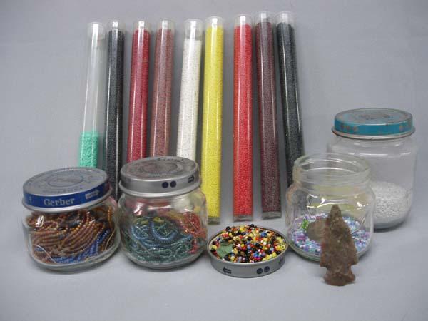 Collection of Seed Beads, 9 vials of assorted colored beads plus 4 baby food jars of beads and 1 pill bottle of beads 1/3 full. Buyers Pay Actual Shipping and Handling Charges(see terms and conditions for more information).