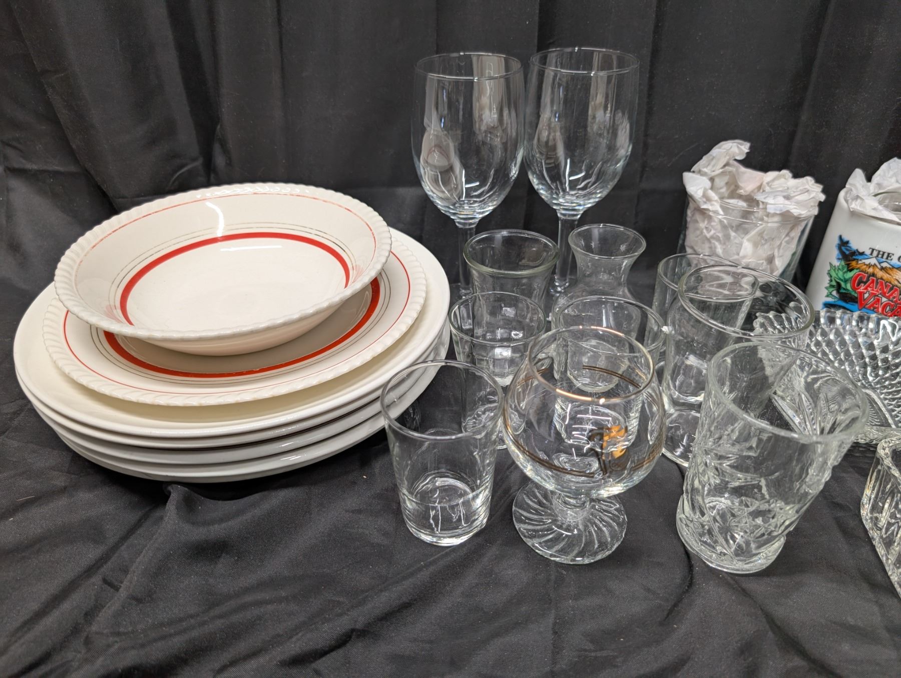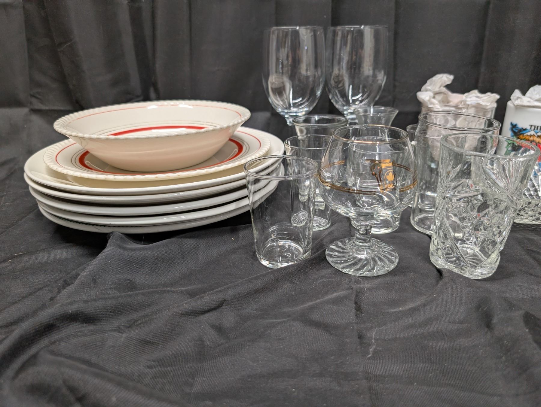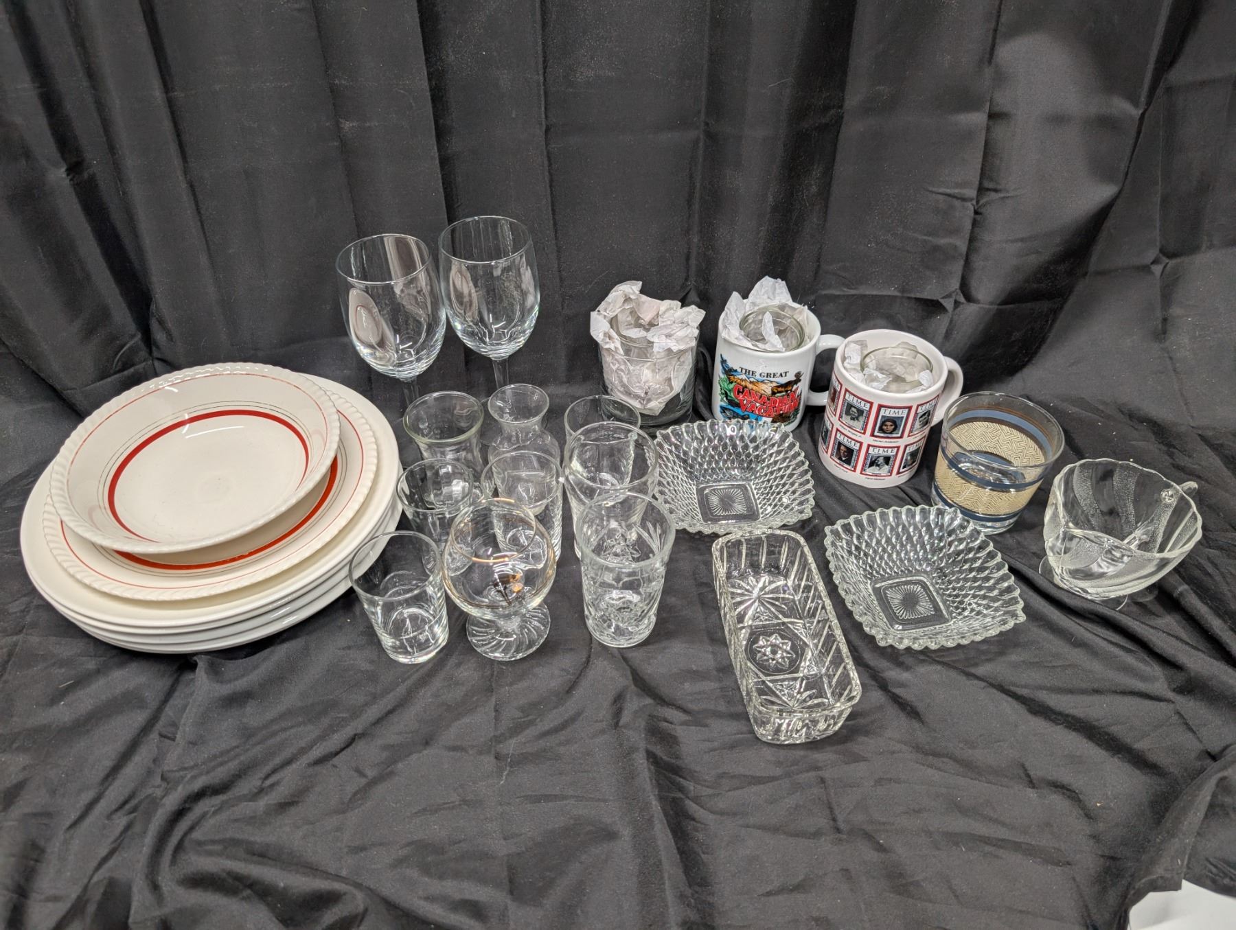 Collection of Shot glass, Wine Glasses, Plates, Mugs, and etc.)