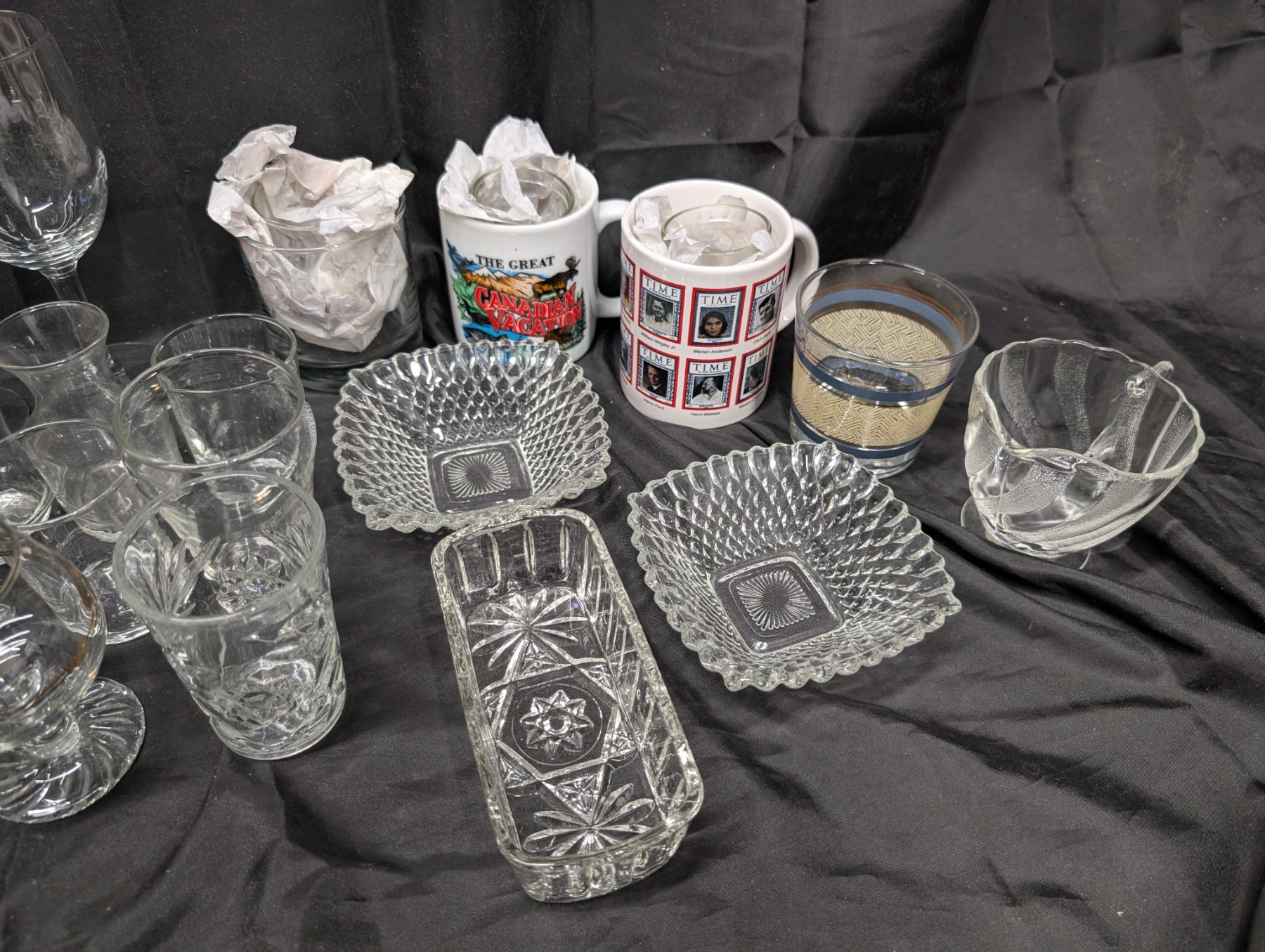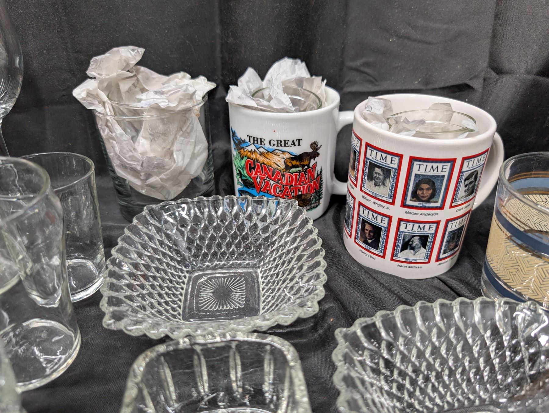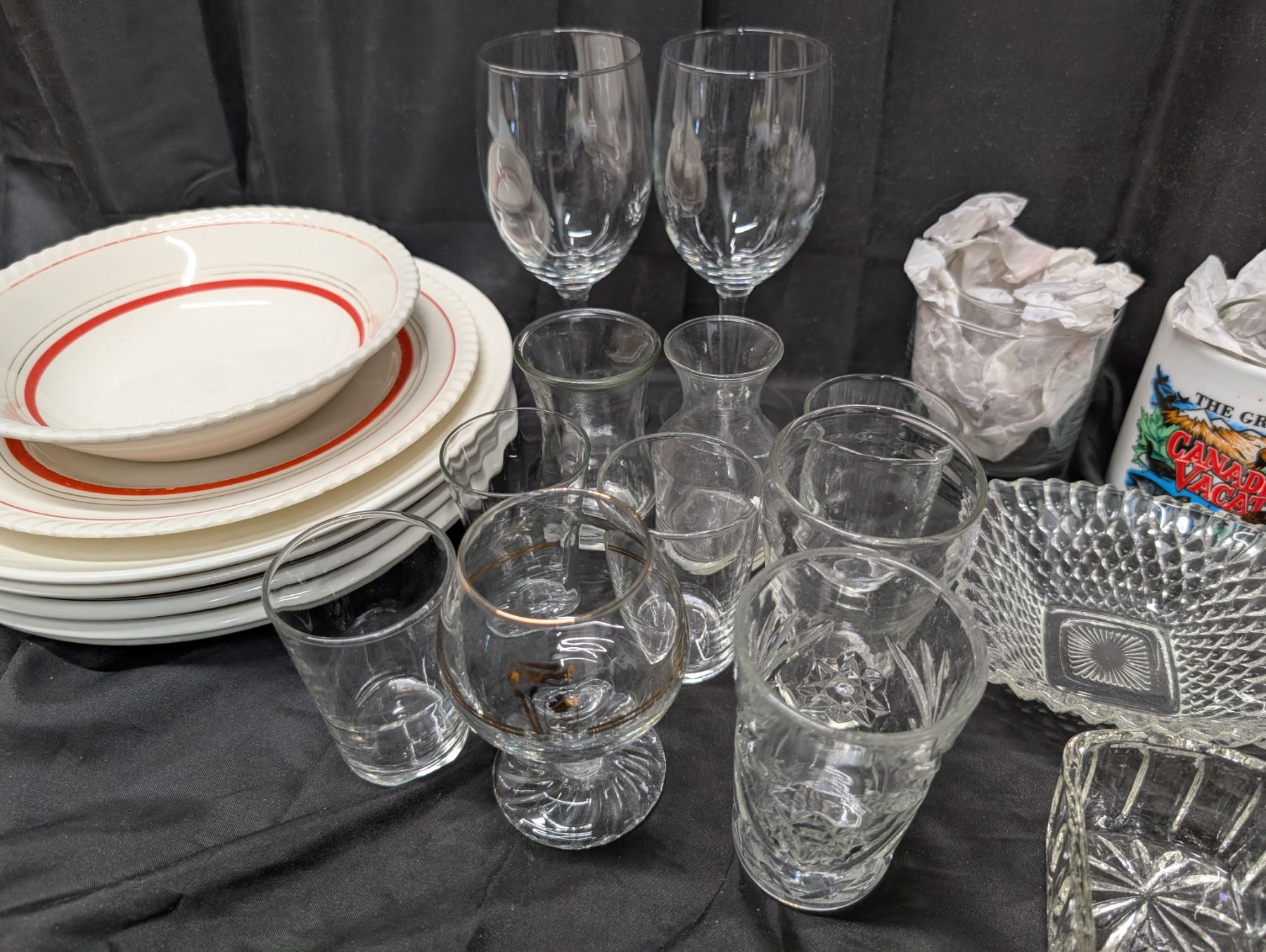 Collection of Shot glass, Wine Glasses, Plates, Mugs, and etc.)