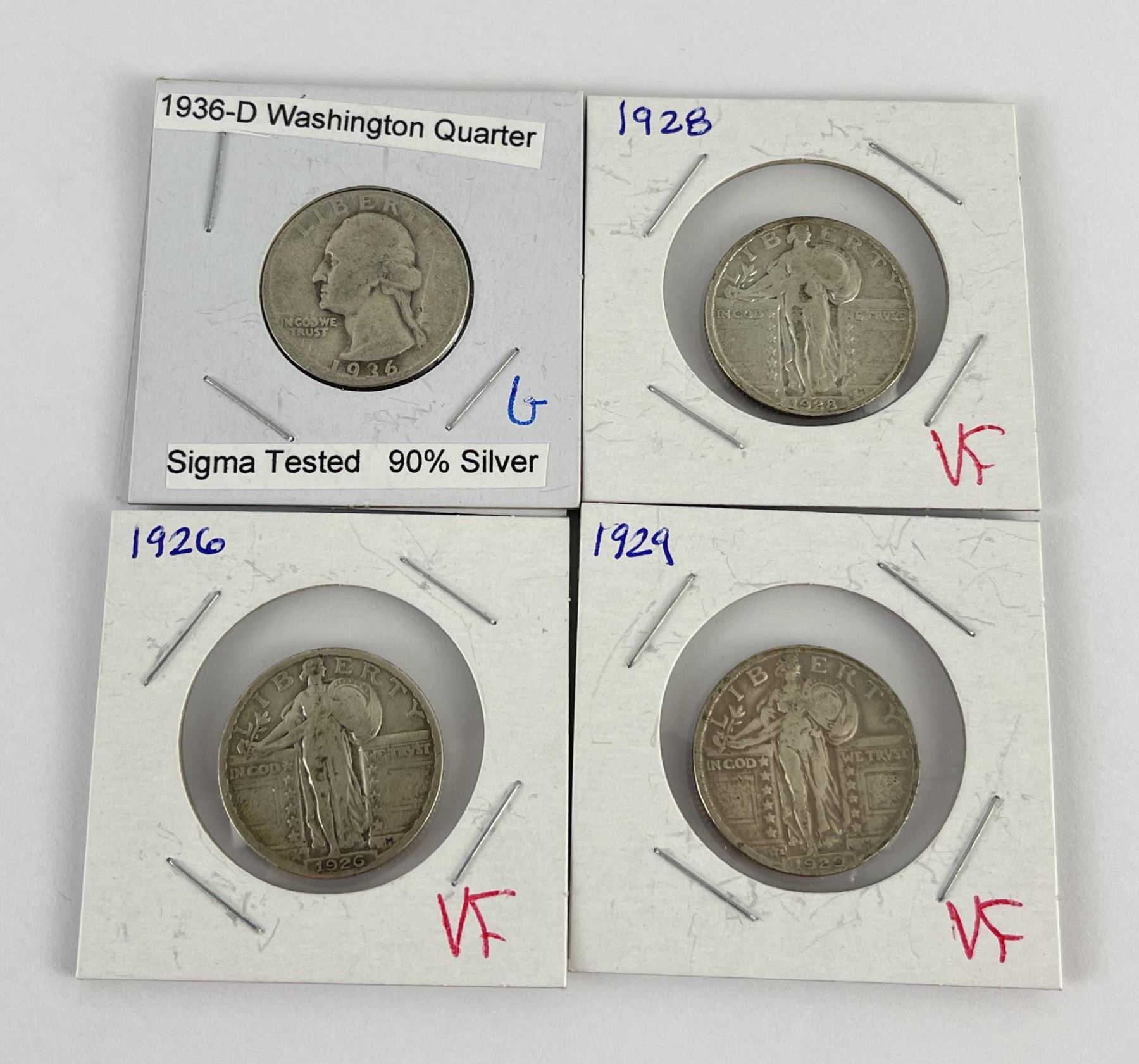 1926 1928 1929 Standing Liberty and a 1936 D.