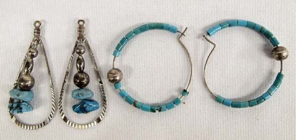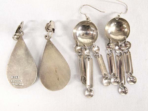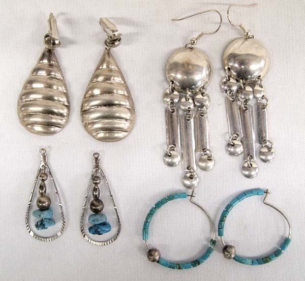 Collection of Southwestern Earrings, Some Sterling, includes one pair of leverback earrings marked .925 Mexico TM-MH (Taxco Silver), the two pairs of silver earrings are 33.71g in total wt.