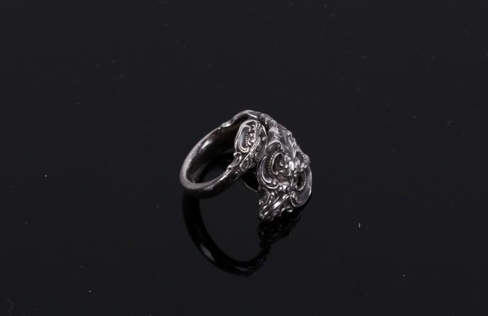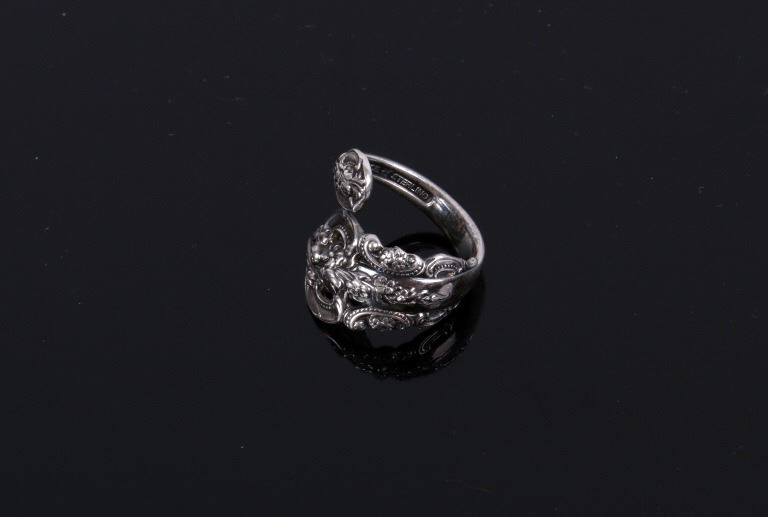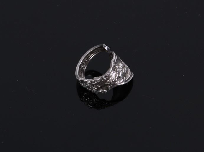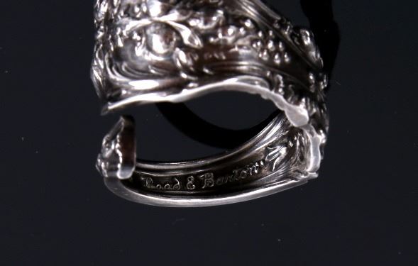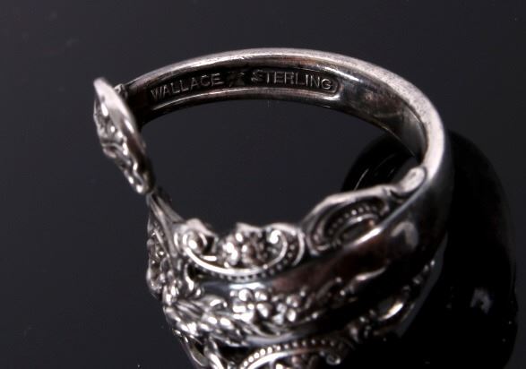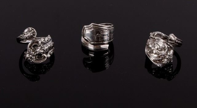Available for your bidding pleasure is this Collection of Sterling Silver Silverware Rings. Silverware rings are considered to have originated in 17th century England, when people began to make rings from the metal handles of table cutlery. In those days, silverware was highly prized. Spoon rings entered a new wave of popularity in the 1960's matching the hippy era. The first ring is stamped Sterling Silver and was made from Reed and Barton silverware. Reed and Barton is an American company operating since 1824. This ring shows excellent detail and measures a US size 6 1/2. The second ring was crafted out of Wallace Silversmiths Silverware. Wallace Silversmiths traces its beginnings back to Robert Wallace, who made the first nickel spoon in America in 1835. This ring shows wonderful design and measures a US size 6 1/4. Lastly, is this simple designed ring that shows no makers mark just a personal insignia, "Julie". This ring boasts great condition and measures a US size 6 1/2.
