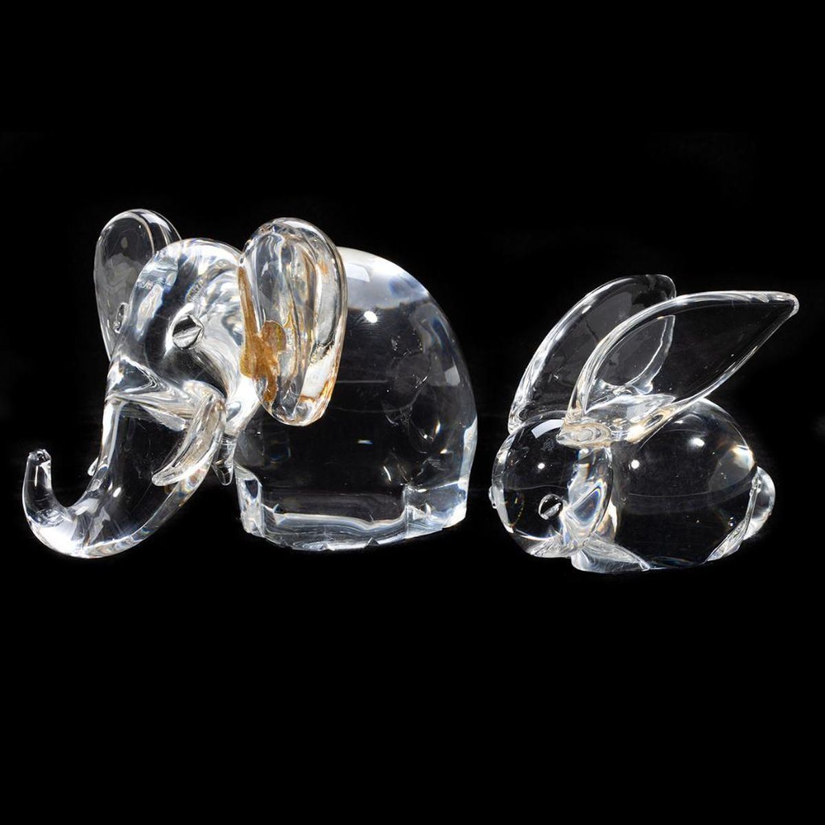 Including two vintage ash trays, a figure of an elephant and a rabbit. All signed on base greatest diameter 8in. Condition: repair to Elephant ear and rabbit ear.