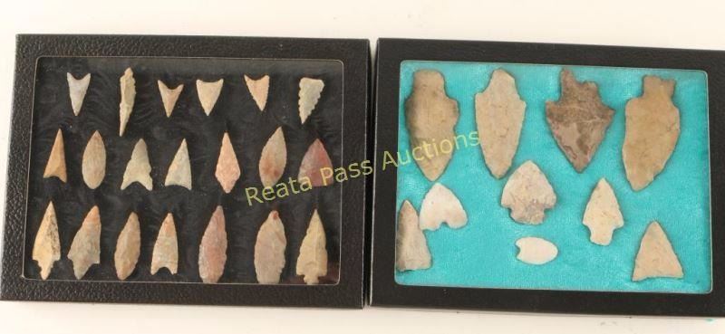 1 Riker case of Neolithic points, 5,000 years old per consignor, unknown origin 20 total. 1 Riker case of points from Arkansas, unknown age, 10 total. Offered "as is", we don't guarantee the authenticity of this item, please do your research. All sales are final.