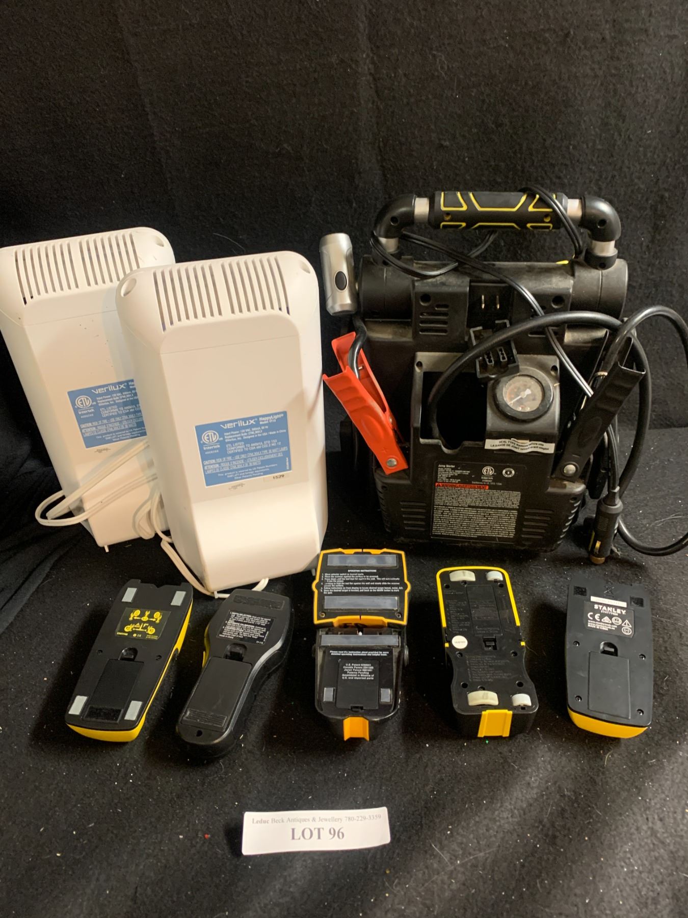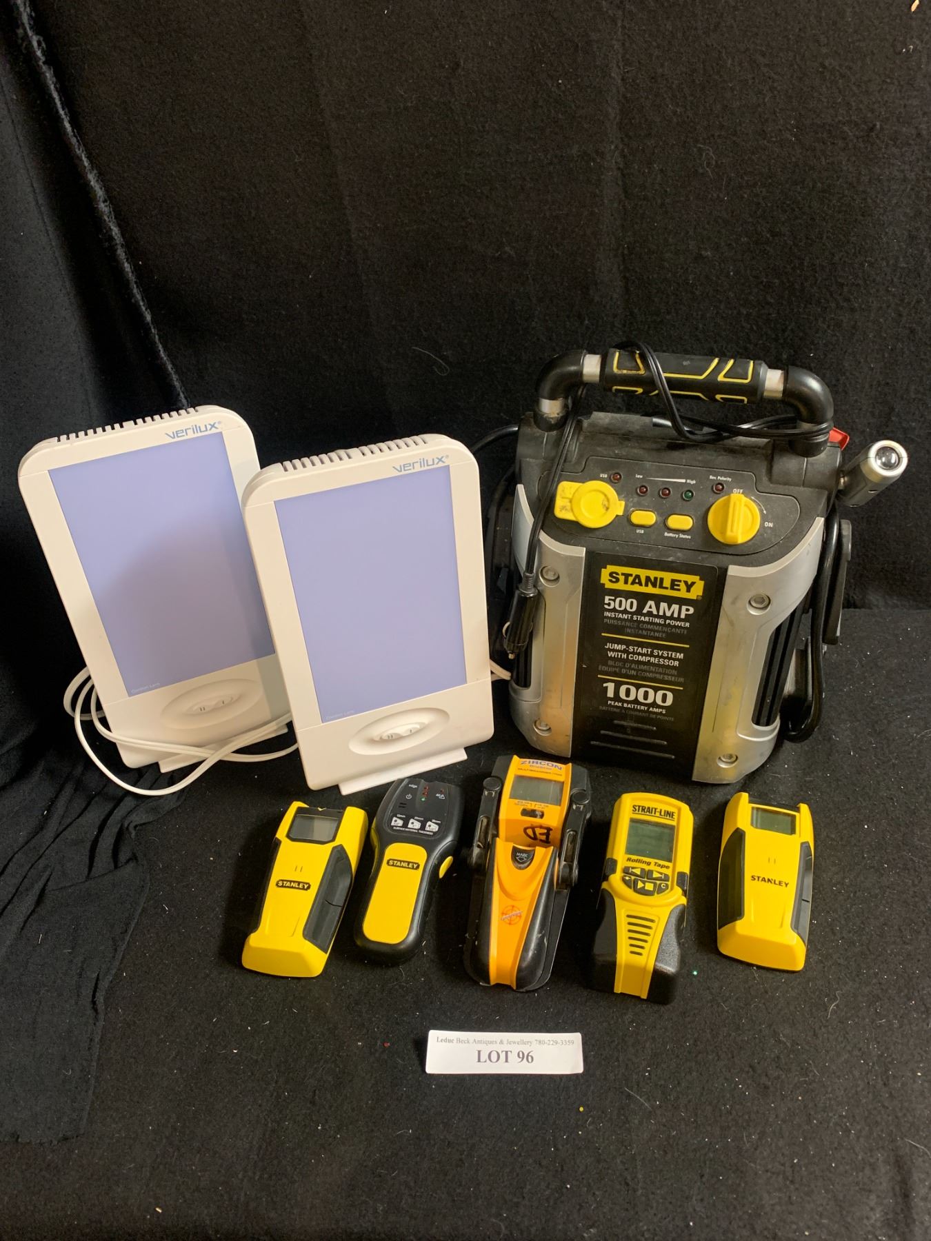 Collection of Stud Finders, 500 AMP Stanley Jump Starting System w Compressor, UV Happy Lights by Verilux