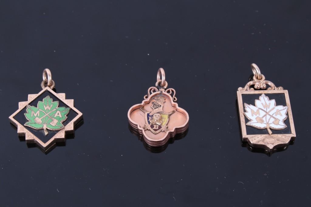 For your bidding pleasure are these Collection of Three Knights of Pythias Watch FOB's. The Knights of Pythias is a frater4nal organization and secret society founded in Washington, D.C., on February 19, 1864. The Knights of Pythias is the first fraternal organization to recieve a charter under an act of the United States Congress. It was founded by Justus H. Rathbone, who had been inspired by a play by the Irish poet John Banim about the legend of Damon and Pythias. MWA FCB