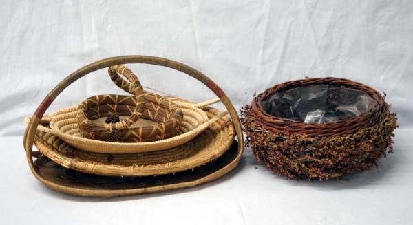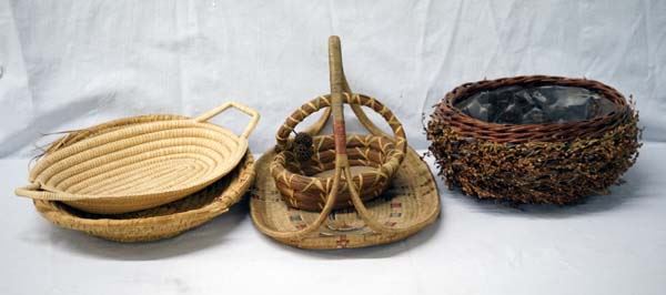 Collection of Tribal Baskets, largest measures 7''W x 12''L, one is stamped Shawnee Okla.