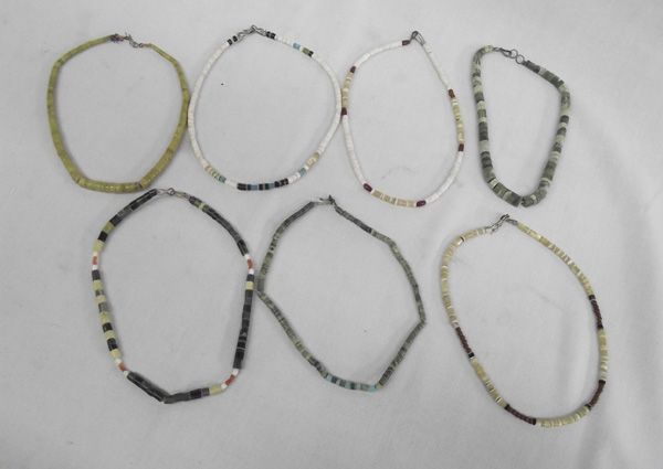 Collection of Turquoise Serpentine & Shell Necklaces. Longest measures 16'' end-to-end.