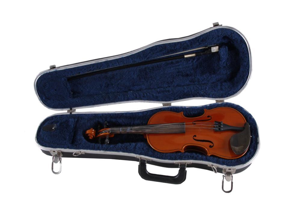 Collection of Two Instruments Including a Harpinola from the John J Sloan Mfg Co., Grand Island, NE.; and a Lisle Violin in a black case.Including a Harpinola from the John J Sloan Mfg Co., Grand Island, NE.; and a Lisle Violin in a black case.