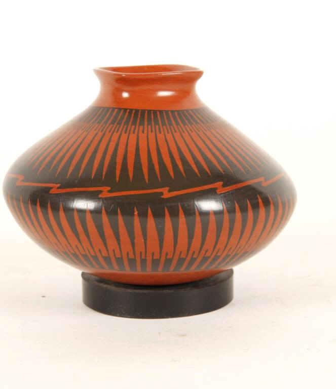 Collection of Two Mexican Pots Both are sienna brown & black, one is signed Julio Ledezna on bottom and the other is signed Laudes Lopez.50Both are sienna brown & black, one is signed Julio Ledezna on bottom and the other is signed Laudes Lopez.50