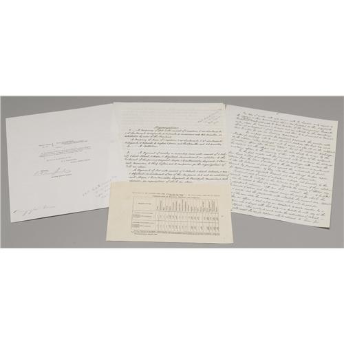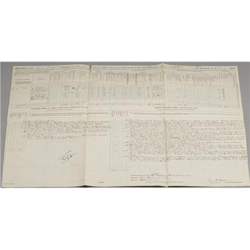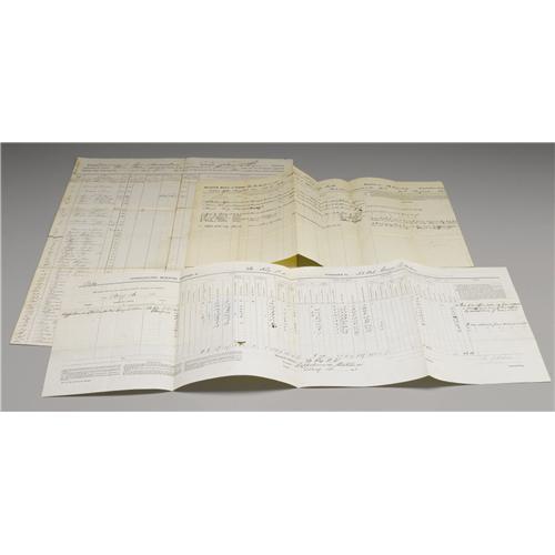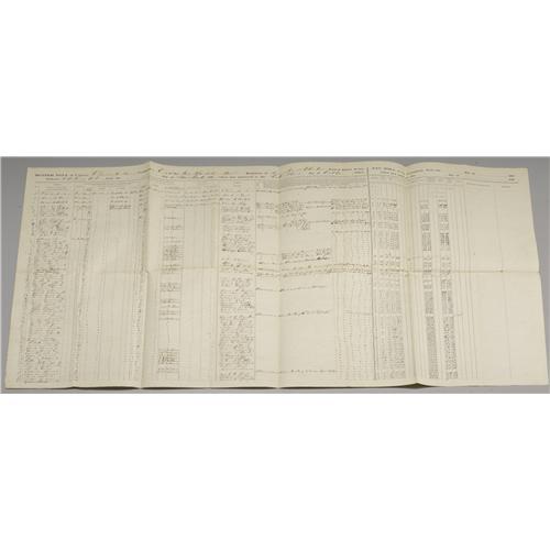 <B>Collection of Union Muster Rolls and Documents</B></I> including the following items: <B>56th Pennsylvania Infantry</B></I>- Muster Roll of the Detachment dated August 31, 1863, Return for the month of September 1864, and a Morning Report dated August 16, 1863; <B>1st Pennsylvania Infantry</B></I>- Muster Roll dated April 21, 1861; <B>201st Pennsylvania Infantry</B></I>- Muster Roll dated October 31, 1864; <B>1st Massachusetts Infantry</B></I>- Muster and Descriptive Roll dated February 23, 1864, Muster and Descriptive Roll dated January 1, 1864; a letter from <B>Captain Francis B. Owen</B></I> of the Office of the Commissary at Yorktown, Virginia dated October 28, 1862 regarding the condemnation of some substinence stores; and an interesting though unsigned or dated manuscript regarding army organization and logistics- five+ pages, beautifully and neatly handwritten. The regimental documents are generally in very good condition, some with fold weaknesses that are easily repaired- very displayable and invaluable as research tools.<BR><BR><b>Shipping:</b> Small Flat (<a target="_blank" href="http://www.heritageauctions.com/common/shipping.php">view shipping information</a>)