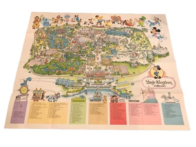 A lot of several Disney guides and a map of Walt Disney World folded. This collection includes the following: let’s tour Epcot center stamp book an album, copyright 1984, Walt Disney World a pictorial souvenir featuring the Magic Kingdom and Epcot Center book, Walt Disney World Epcot Center magazine, vintage Walt Disney’s guide to Disneyland, Another Epcot center memory album and stamp book from 1984 filled out by the previous owner on the first page, American classic screen journal of America’s film heritage from May/ June 1978 volume to number five celebrating 50 happy years with Mickey special convention issue magazine, Disneyland vacation land magazine from spring 1982, vacation land magazine from fall winter 1974 1975, the classroom guide to the Epcot center experience magazine, two of them, Walt Disney’s pictorial souvenir book of Disney land, and Disney’s adventure guide to California copyright 1980.