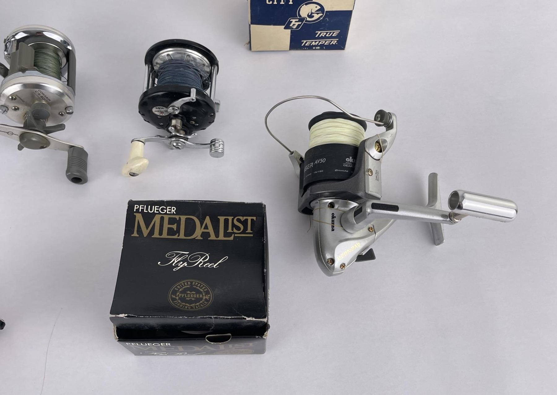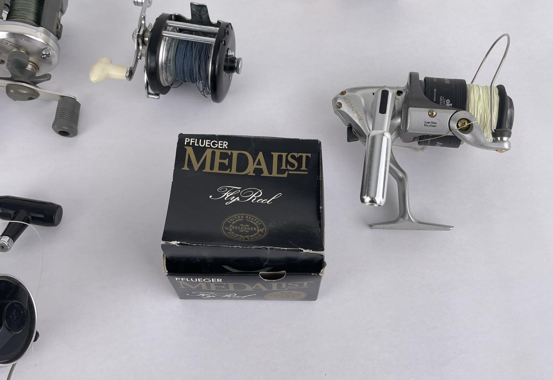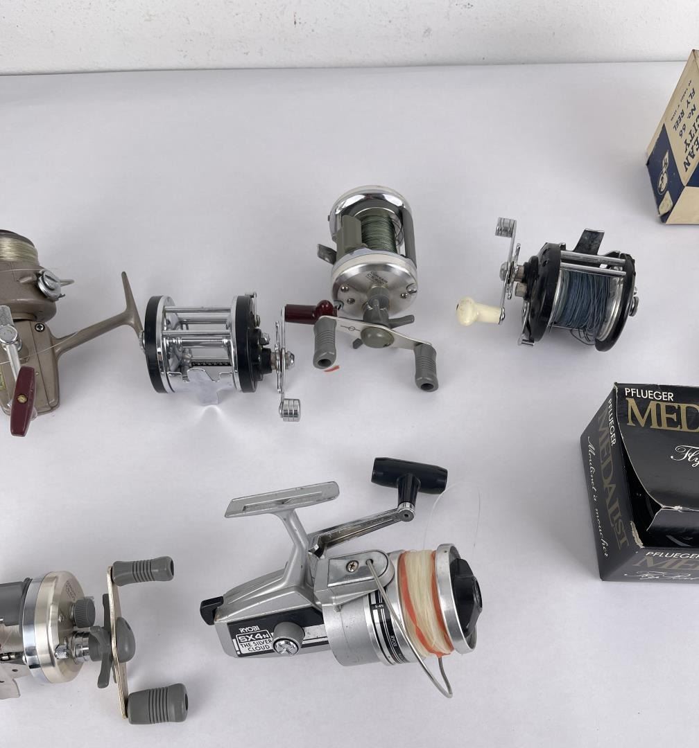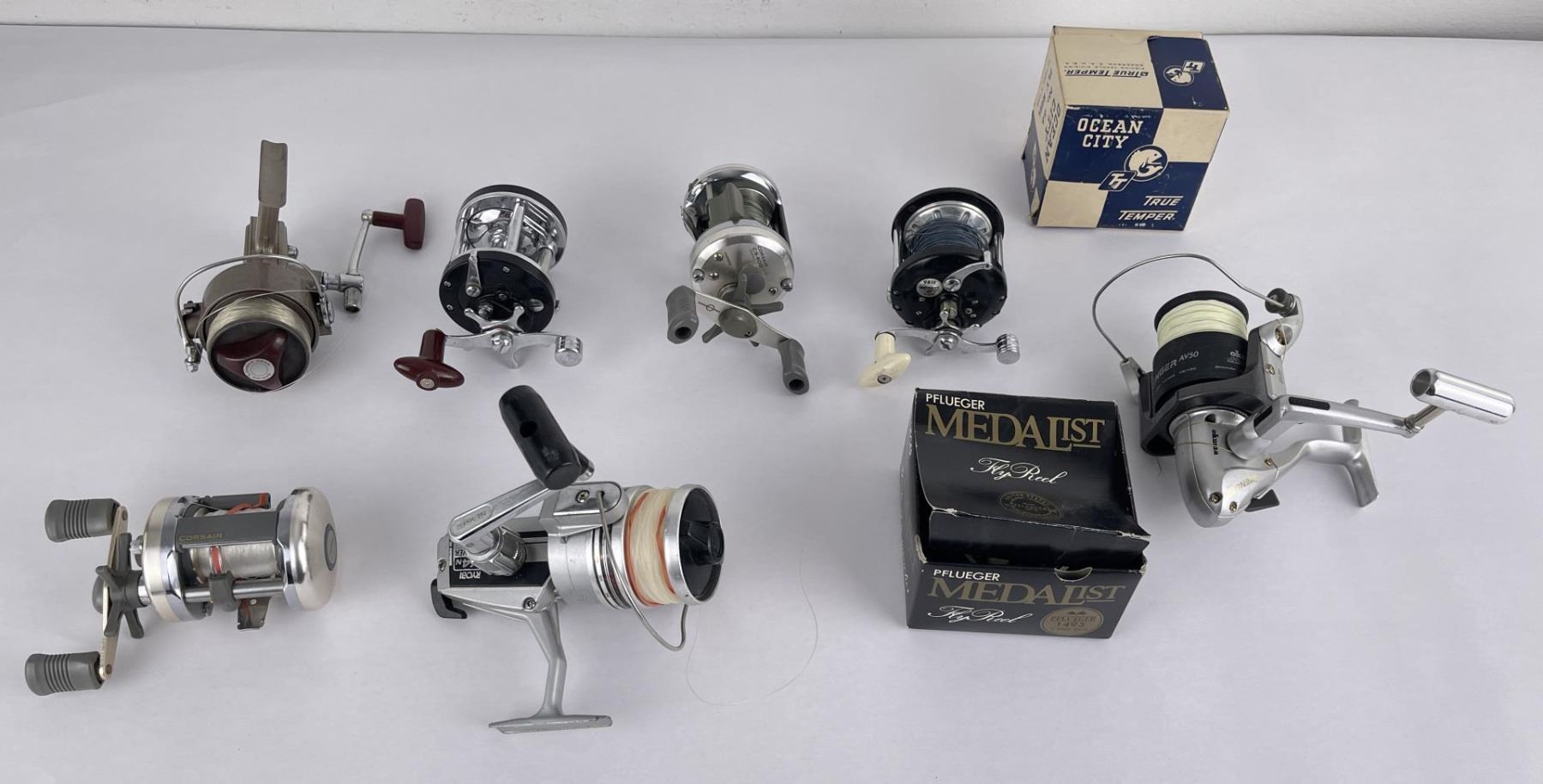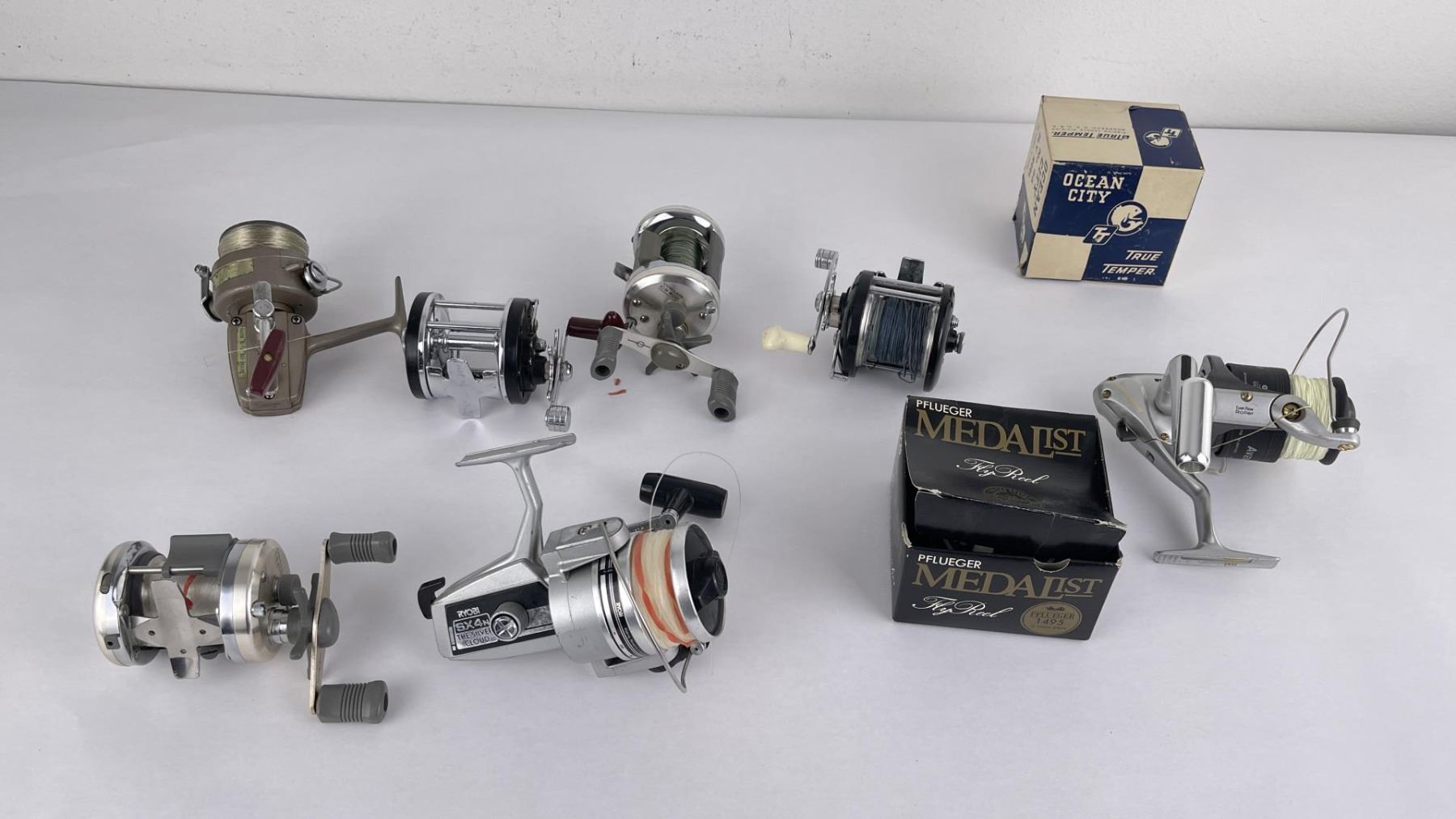 Nice grouping Spinning and Bait Casting Reels. Pflueger, Ocean City, Ryobi, and more. Total of 9 Reels.