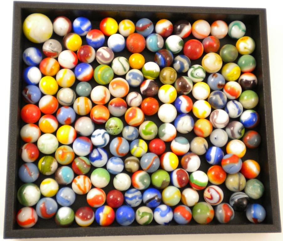 These were found at a local estate last summer. They all look old and the family had lived in the house for over 65 years. A quick count shows more than 125 marbles. We have not pulled any out or had anyone pick through them.