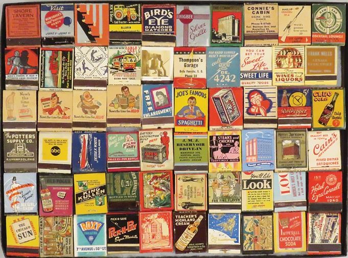Collection of Vintage Match Books. 60 including food, taverns and soda.