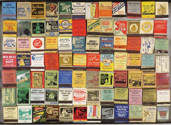 Collection of Vintage Match Books. 84 including restaurants, ice cream and motels.