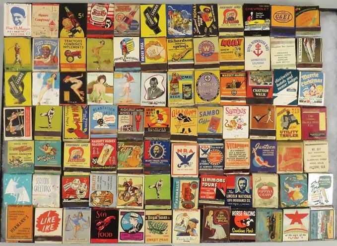 Collection of Vintage Match Books. 84 including Pin-up, soda and hotel.