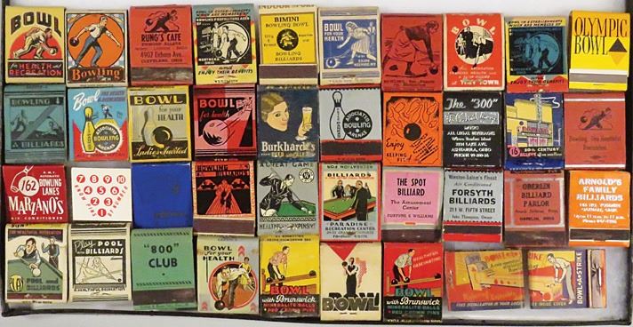 Collection of Vintage Match Books. 39 including Bowling and Billiards.