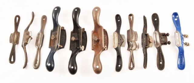 Vintage Stanley collection including: (2) No. 80 & a No. 80M Cabinet Scrapers, No. 151 Spoke Shave Plane, No. 51 and No. 53 Spoke Shaves, & more.