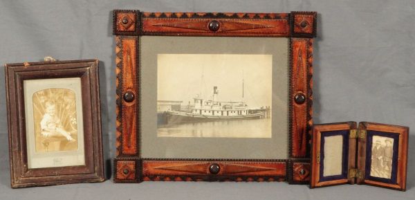 Texas boat "Ima Hogg" (8" x 6"), Photo of young boy (Schulenburg/El Campo photographer folder); and Photo of two young boys in Inlaid wood folder (pencil writing inside indicates it was taken in 1902).