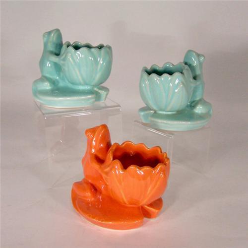Description: Three pottery frog planters / ashtrays, marked weller on all 3.