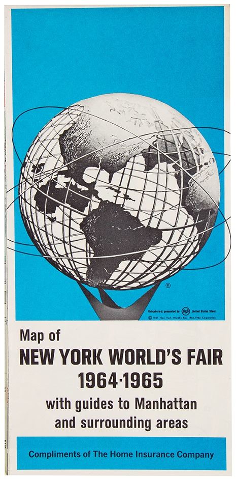 (World's Fair, 1964-65) A collection of paper memorabilia from the 1964-65 New York World's Fair. These items include maps, guides, brochures, and other memorabilia that provide a great look at what a visitor to the Fair would have had as they navigated the city and the Fair itself. The set is in fair to good condition overall with some adhesive damage on the Insured Home World's Fair organizer and the Young Explorer's maps of Manhattan.