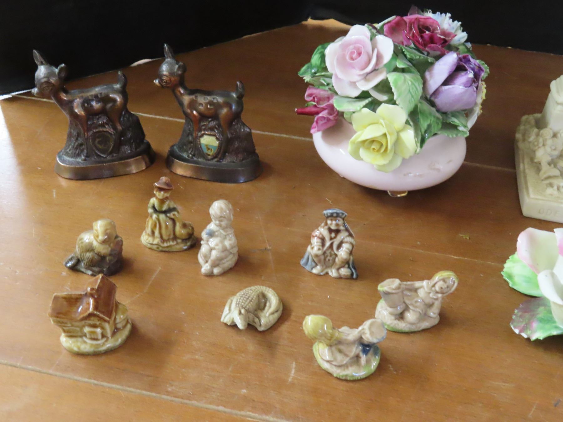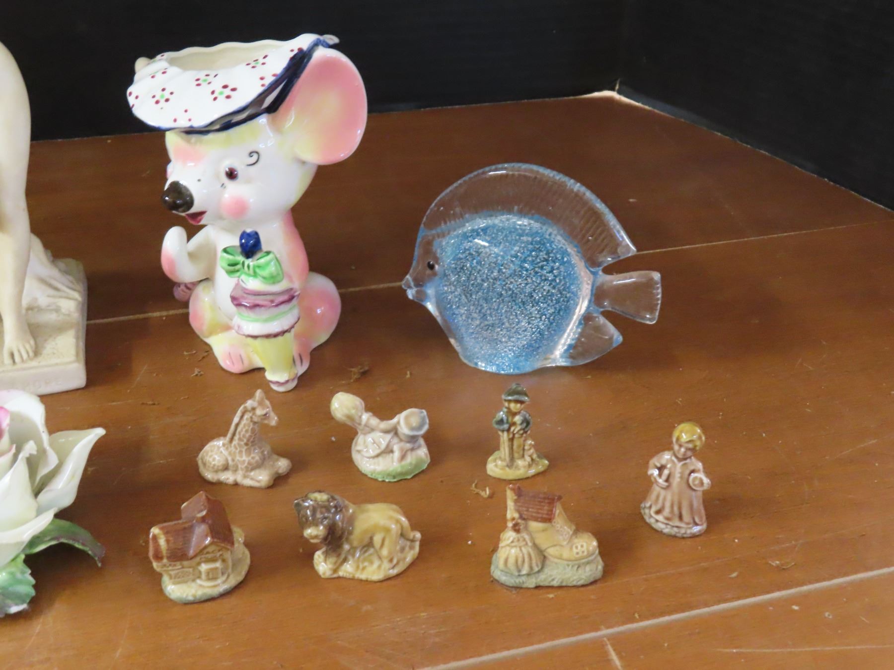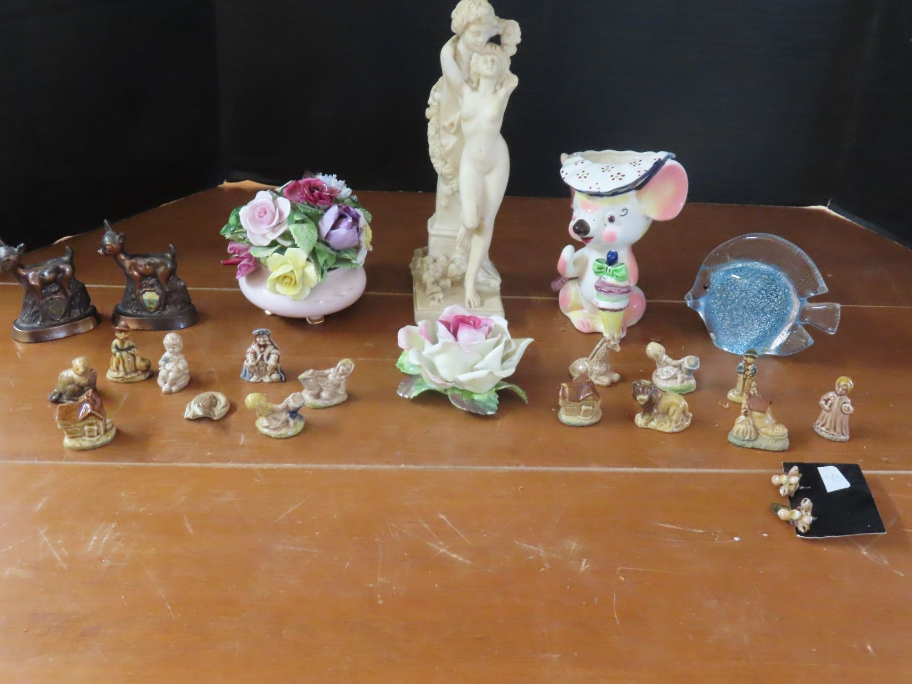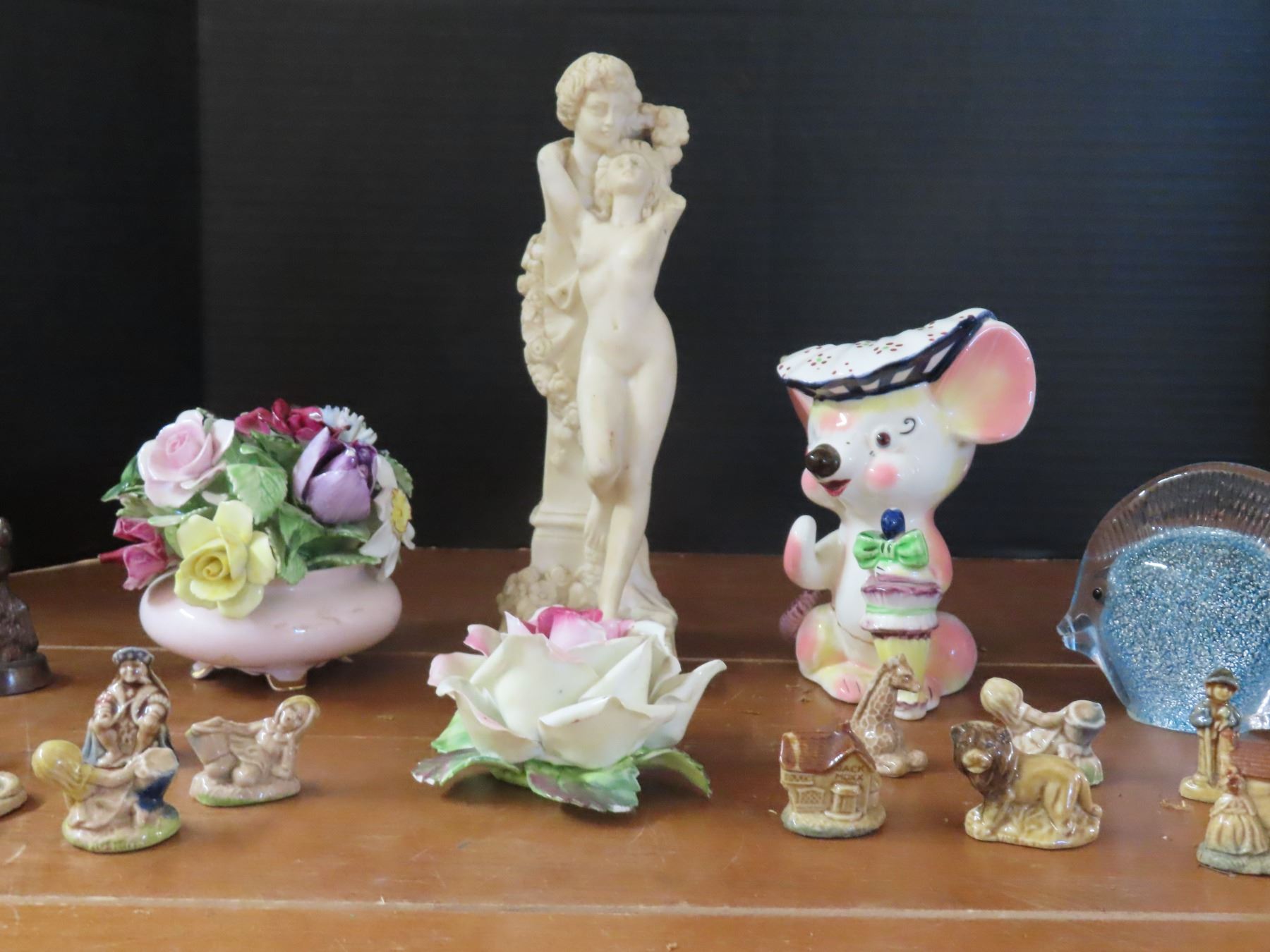 Collection of assorted figurines - fish, mouse, flowers, tea figures, etc.