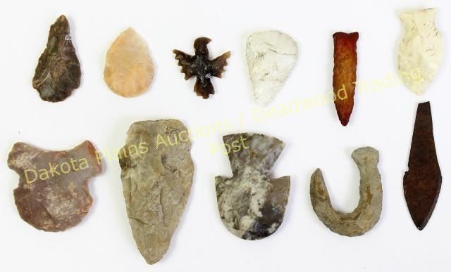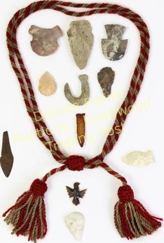 Collection of authentic Indian artifactsfound in western Minnesota and original wool Indian scout hat cord with double knots C. 1890"s, all very good to fine condition. From the Jerome Klingfus collection. Est. 350-700