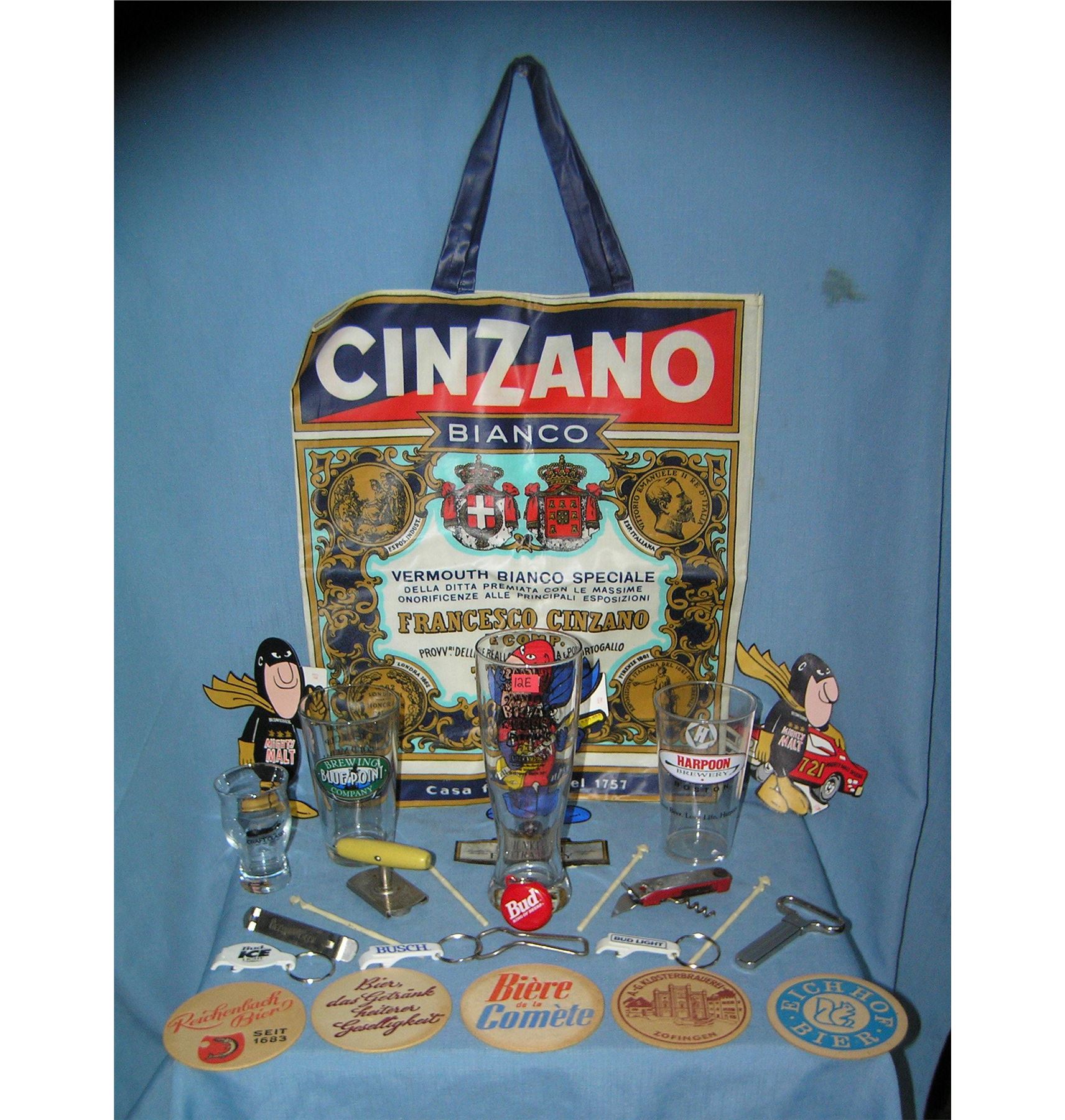 Collection of brewery and alcohol advertising pieces includes Budweiser est. value $80.00-$100.00