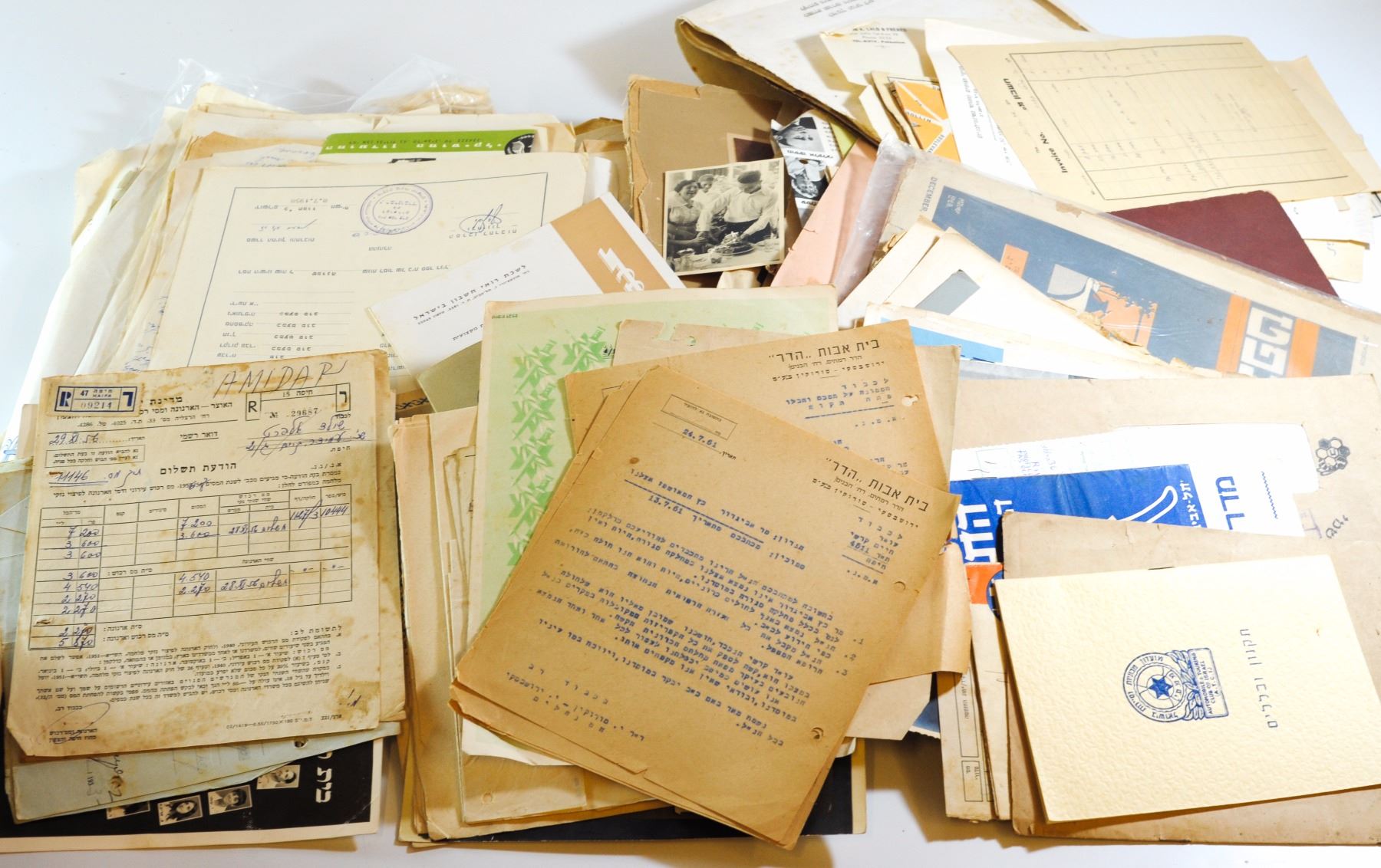 Collection of documents, booklets and books, Mandatory Palestine and Israel's first decades, includes letters, documents, booklets, maps, receipts, newspapers and more.
