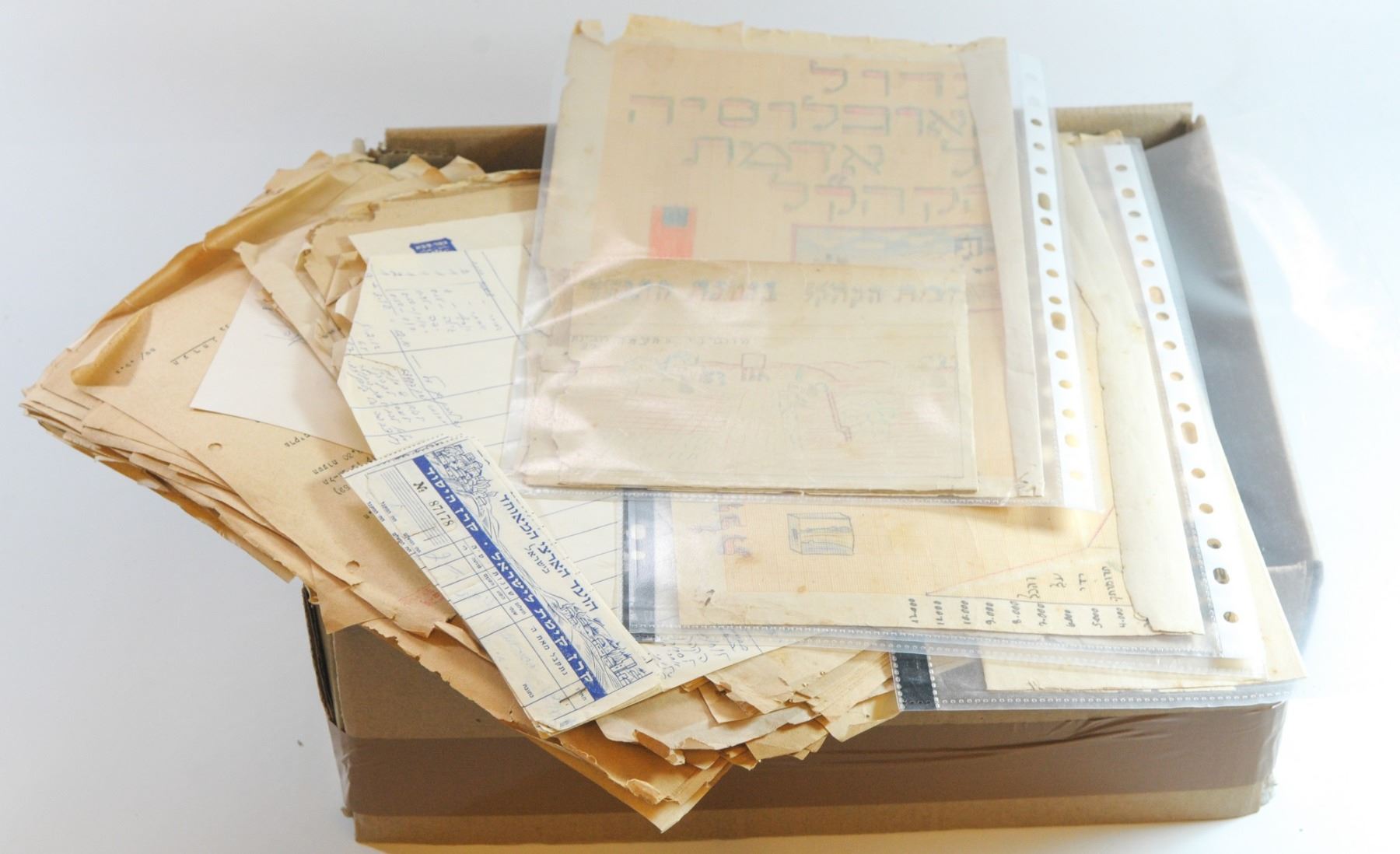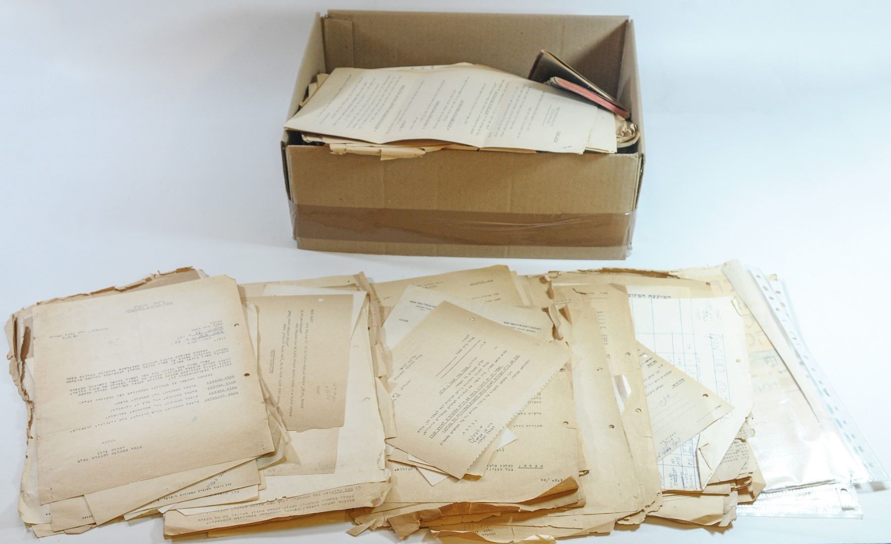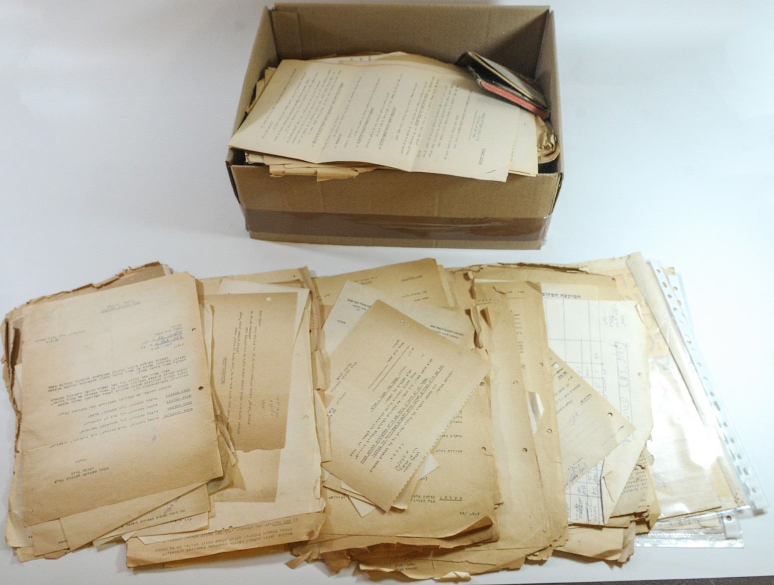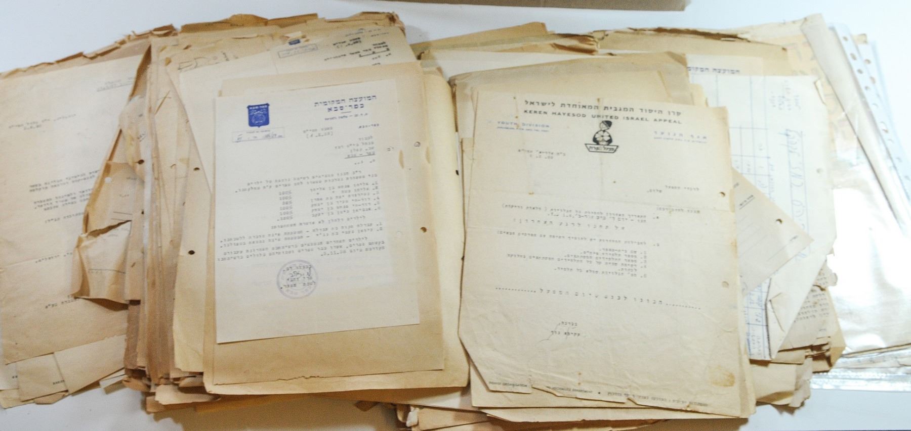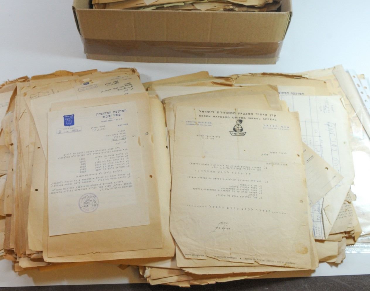 Collection of documents, contracts and memos of the Remez School in Kfar Saba, 1940-1960s, Mandatory Palestine and the State of Israel, including many letters of the Teacher's Union for the NJF, the Ministry of Education and Culturea and the Kfar Saba Municipality, as well as flyers, banners and additional documents related to the school. Big collection that comes inside a large box: 38X30X13 cm.