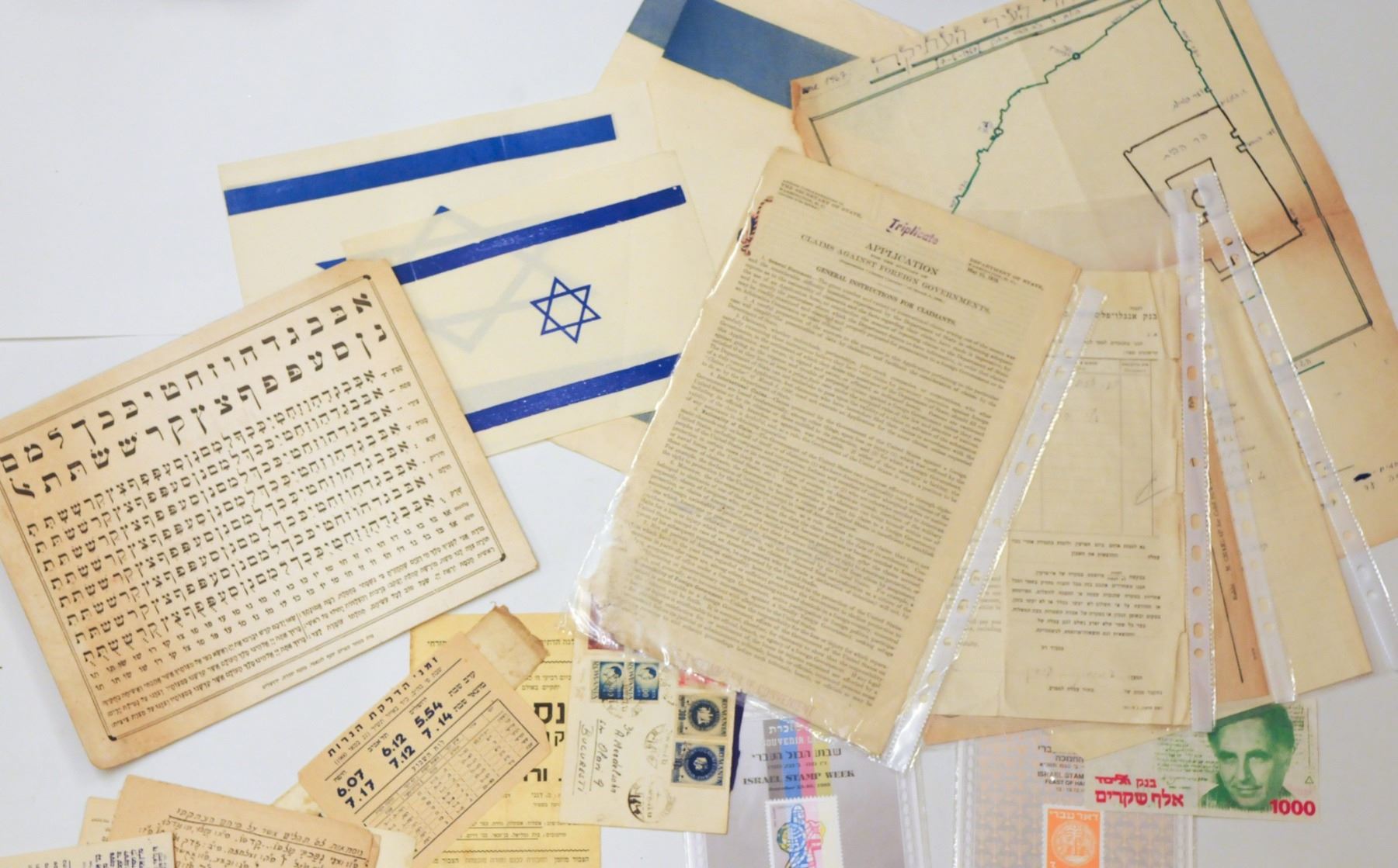 Collection of documents, letters, receipts, philately documents, Mandatory Palestine