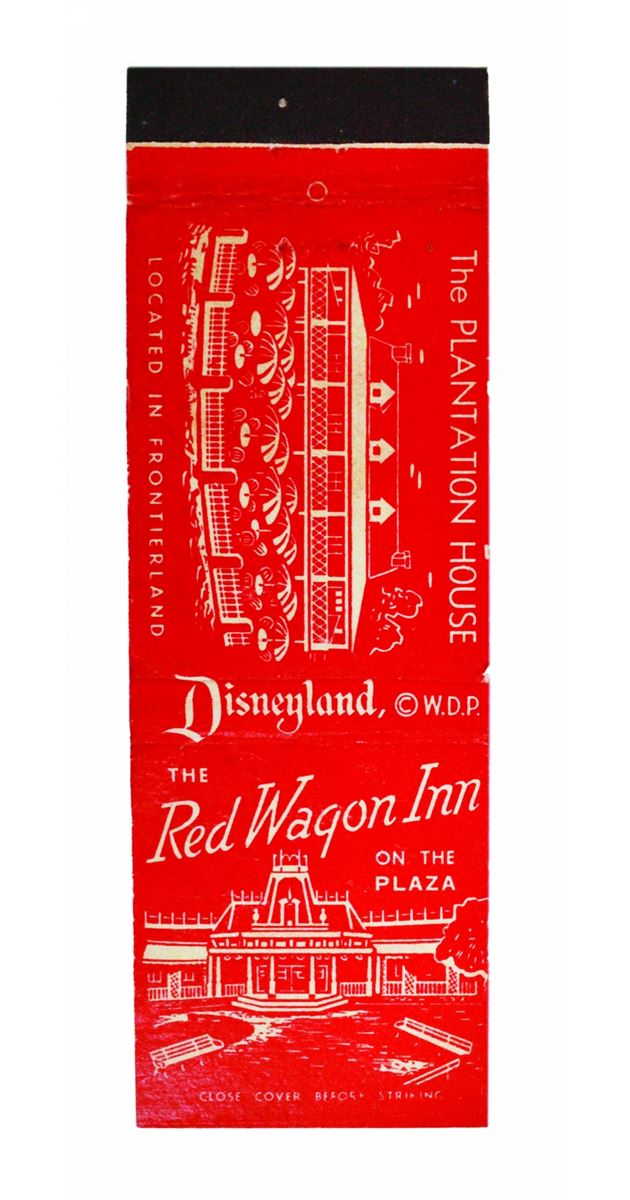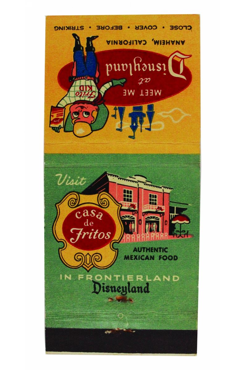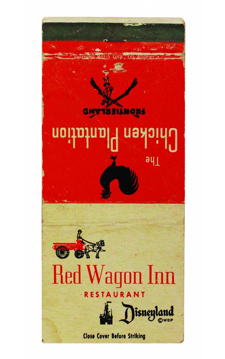 (Disneyland 1950s) Collection of (4) early matchbook covers including Swift's Red Wagon Inn/Plantation House, Aunt Jemima's Kitchen, Casa De Fritos, and Swift's Red Wagon Inn/Chicken Plantation. In good used condition overall.