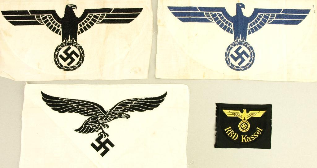 two German Army Athletic shirt insignias, one Luftwaffe Athletic shirt insignia, one German RBD Kassel railway patch.