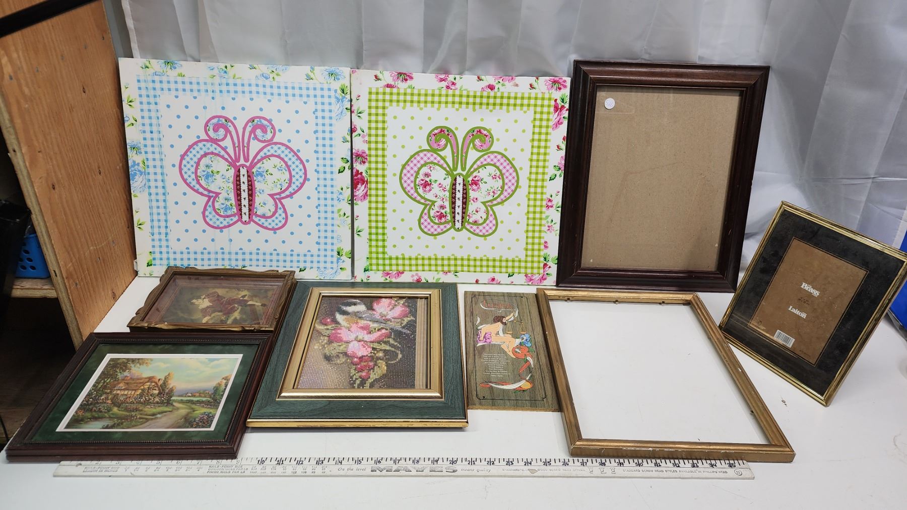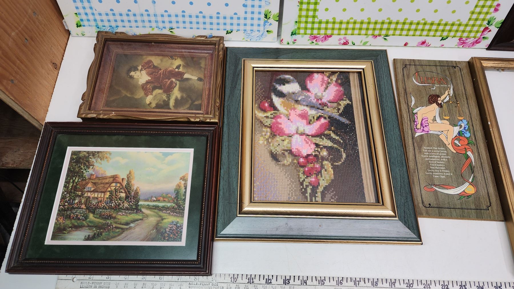 Collection of framed pictures, picture frames, plaque and canvas pictures