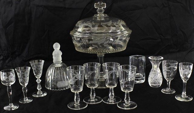 candy dish, stemware and more. Frawley Estate items. Est. 25-75