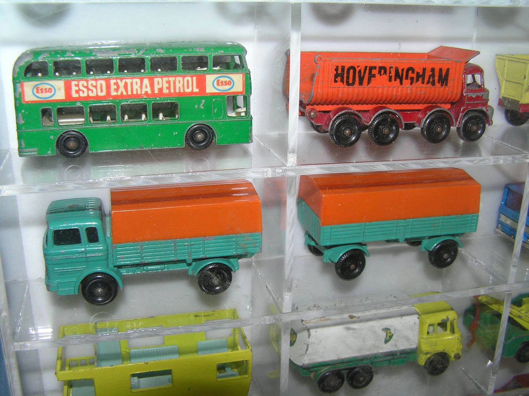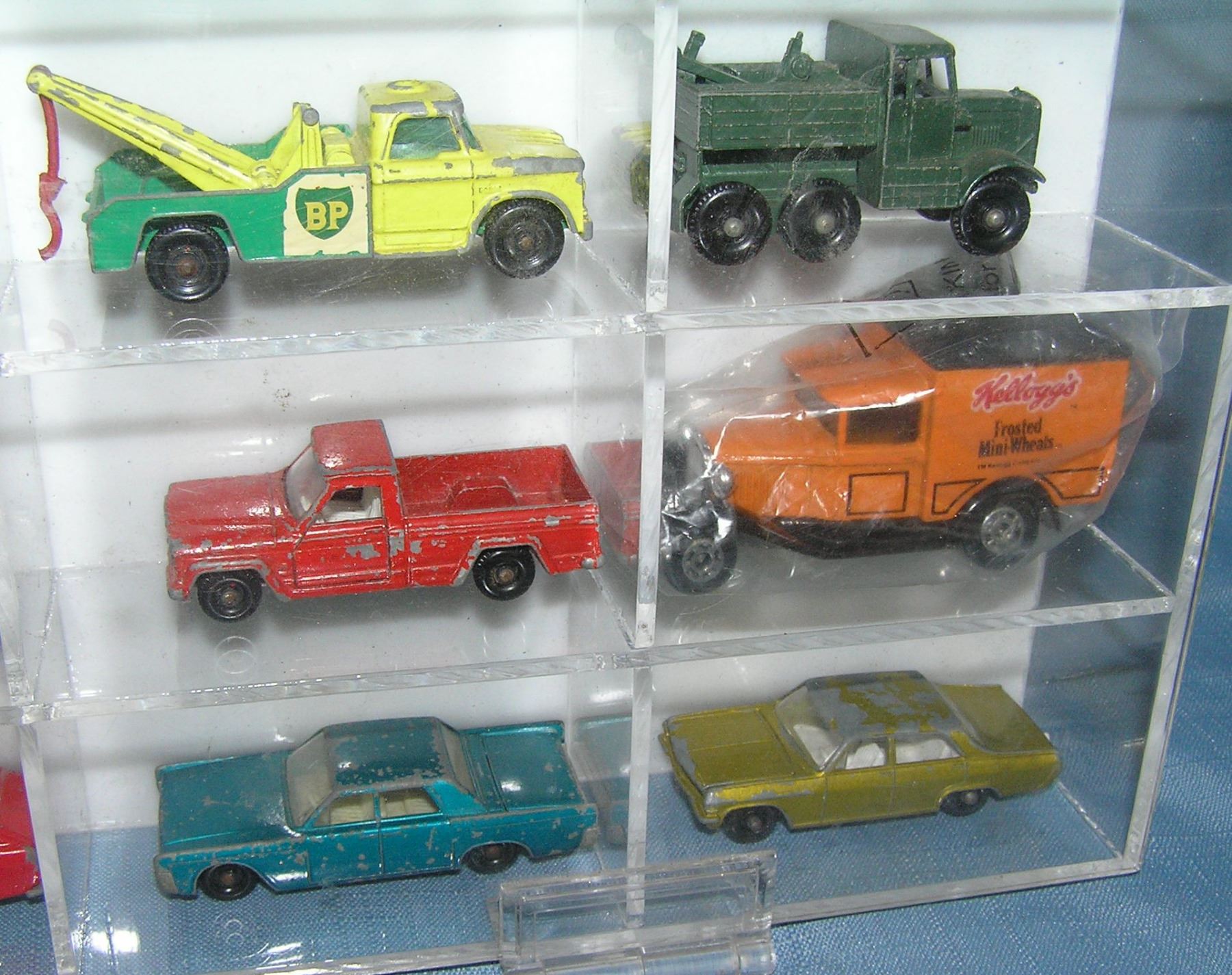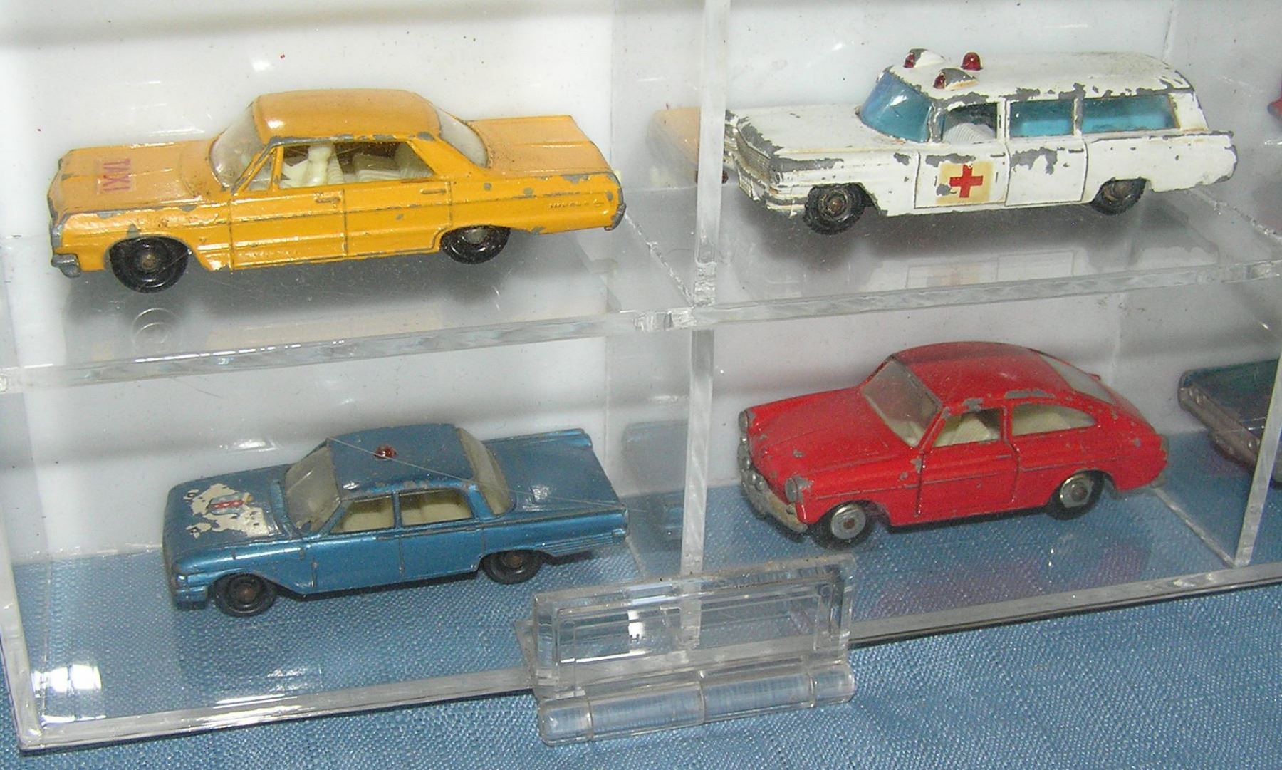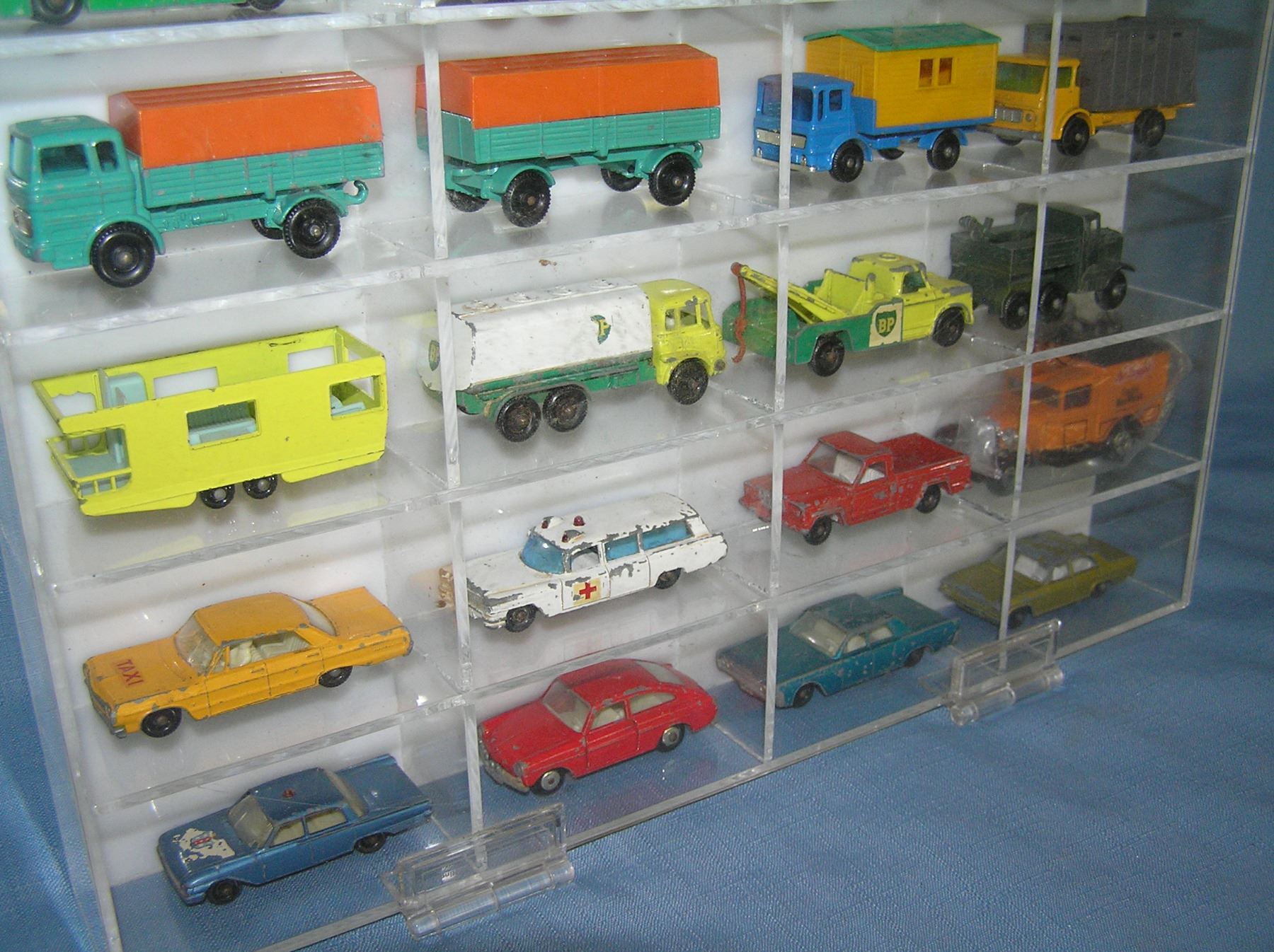 Collection of great early Matchbox collector cars mostly circa 1950's and 1960's in custom made Lucite display case est. value $750.00-$800.00