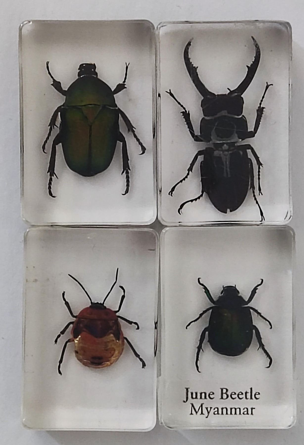 Dune beetle, oriental flower beetle, stag beetle and a Tectocoris diophtalmus.