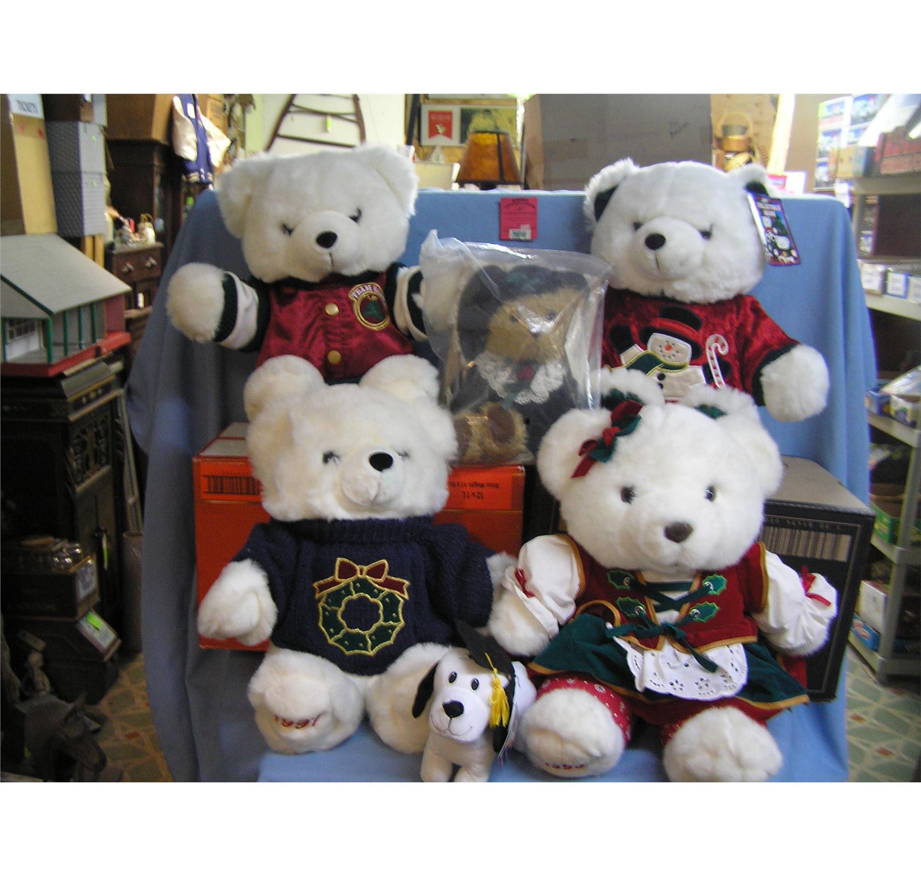 Collection of large holiday bears and collectibles