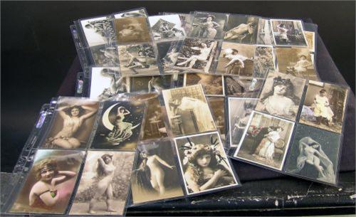 Collection of original real photo French Erotic Postcards in binder.